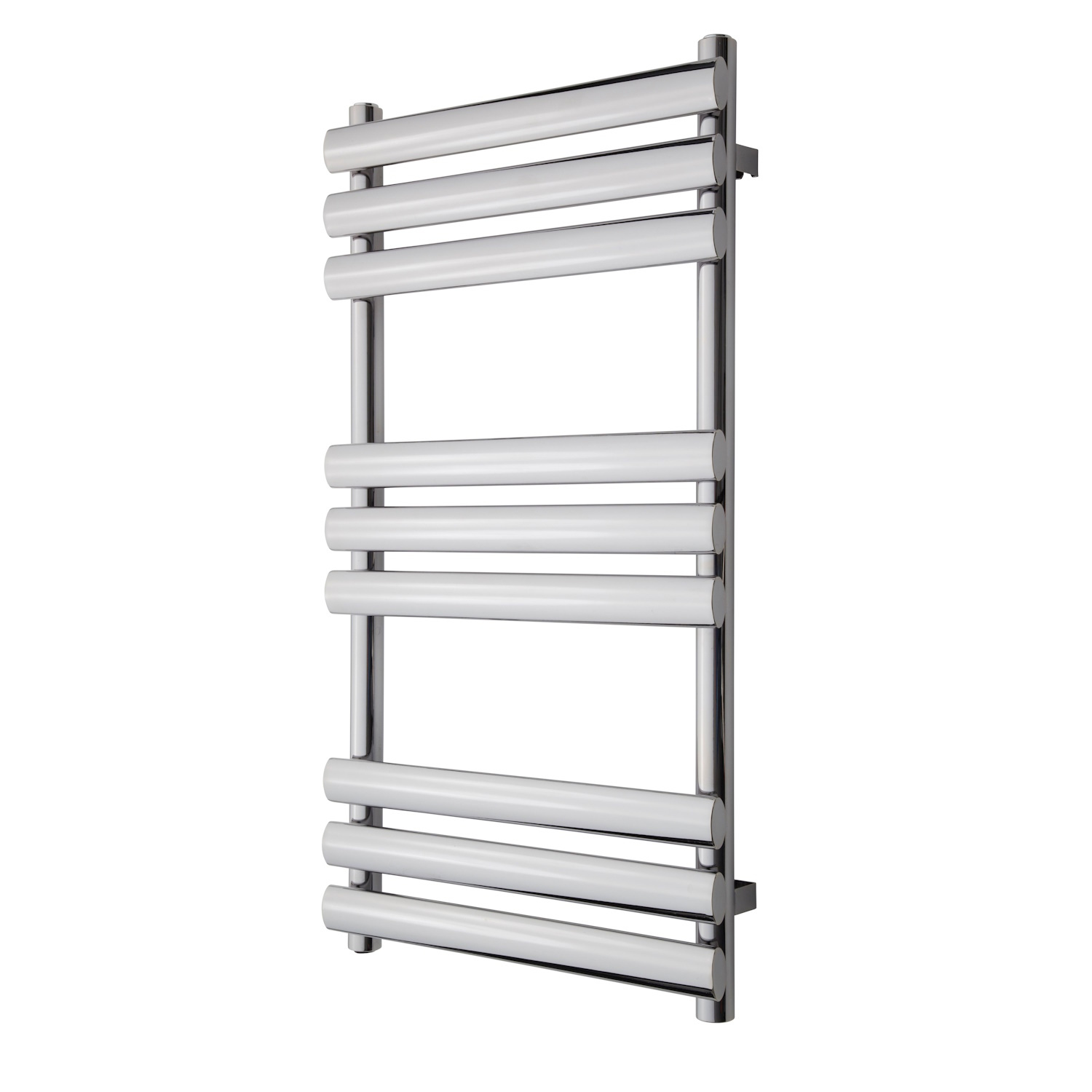 Bent u op zoek naar een designradiator met voor in uw strakke badkamer? Dan is deze radiator van TVS uit de serie Milo iets voor u. Deze chromen radiator is 94 cm hoog en 52 cm breed. Hij bestaat uit 2 verticale buizen en 3 setjes van 3 horizontale, platte buizen. Deze radiator heeft 4 stalen bevestigingspunten aan de achterkant zitten, waardoor u hem aan de muur kunt bevestigen. De radiator is geschikt voor zowel de centrale verwarming als elektrisch en hij heeft een capaciteit van 300 Watt. Door deze radiator te plaatsen, krijgt u badkamer een moderne look met de luxe van een warme handdoek na het douchen. Zo komen design en comfort samen.