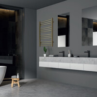 Bent u op zoek naar een designradiator voor in uw badkamer? Dan is deze radiator van TVS uit de serie Plus 12-500 echt iets voor u. Deze radiator is goud van kleur en hij is 78.5 cm hoog en 50 cm breed. Hij heeft 2 verticale buizen en 4 setjes van 3 horizontale buizen. Aan de achterkant zitten 4 bevestigingspunten waardoor u hem aan de muur kunt bevestigen. Hij heeft een capaciteit van 189 Watt. Met deze radiator heeft u de luxe van een warme handdoek na het douchen. Door zijn kleur en design geeft deze radiator een luxe uitstraling aan uw badkamer.