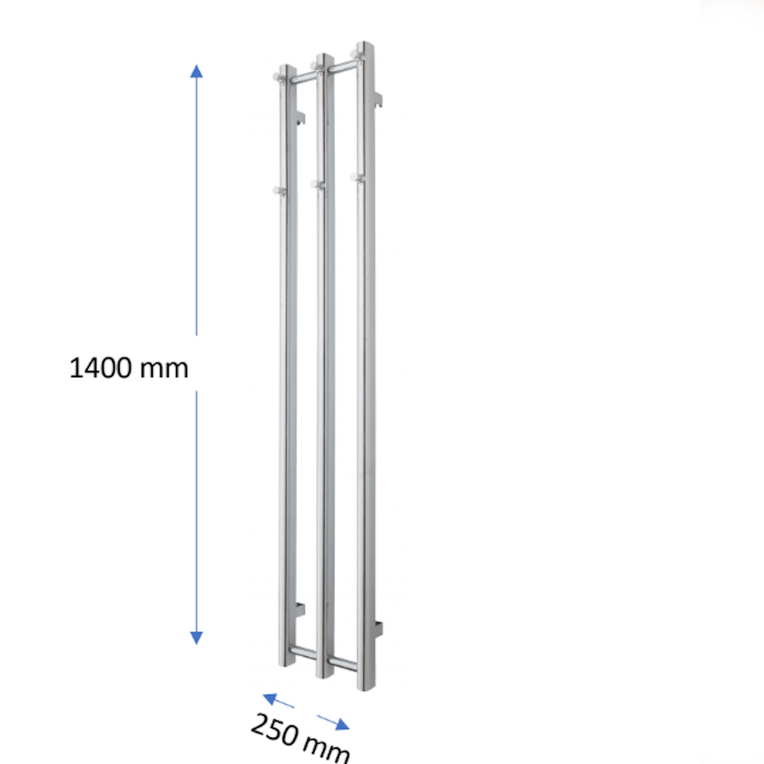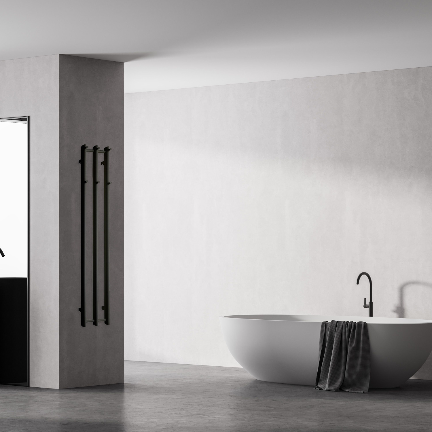 Bent u op zoek naar een designradiator voor in uw kleine badkamer? Dan is deze radiator van TVS uit de serie Vino 3 helemaal iets voor u. Deze radiator is 140 cm hoog en 25 cm breed. Hij heeft een zwarte kleur en past door zijn smalle design in elke badkamer. Deze radiator bestaat uit 3 verticale buizen die een D-vorm hebben en 2 horizontale buizen die een ronde vorm hebben. Aan de verticale buizen zitten 6 haakjes verdeeld over 2 rijen. Hieraan kunt u uw handdoek aanhangen om lekker op te warmen. De radiator moet worden aangesloten op de centrale verwarming en hij heeft een capaciteit van 195 Watt. De radiator kan aan de muur worden gehangen, doordat er aan de achterkant 4 stalen bevestigingspunten zitten. Door voor het douchen uw handdoek op te hangen, heeft u na het douchen een lekker warme handdoek. Zo komt luxe en design mooi samen.