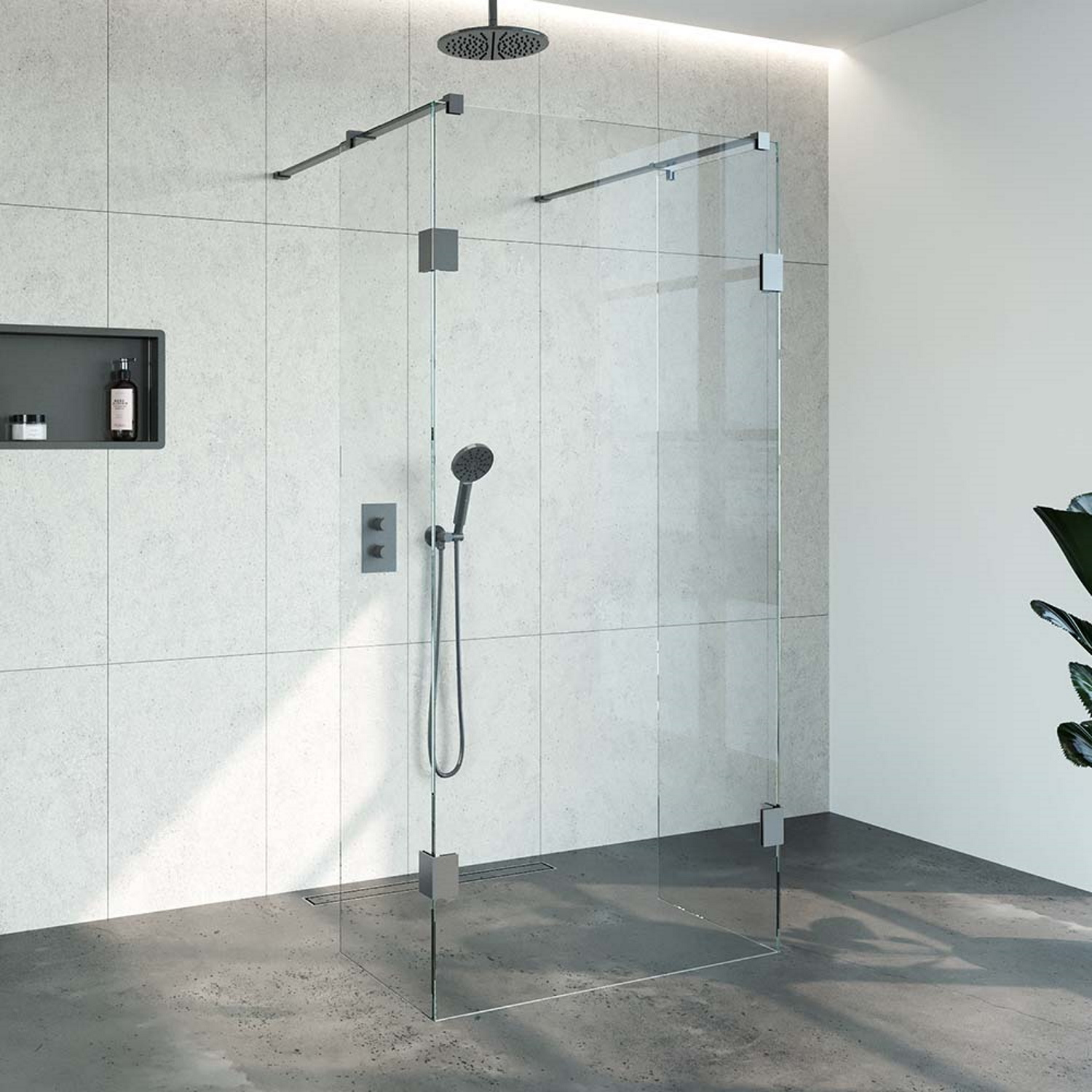 Als u graag minimalisme in uw badkamer wilt, is een doorloopdouche een goede keuze. Deze complete doorloopdouche bestaat uit een doorloopwand met twee vaste zijwanden. De doorloopwand is 100 cm breed en 200 cm hoog. De zijwanden zijn beide ongeveer 50 cm breed. Inclusief glasbehandeling. Deze doorloopdouche straalt luxe en rust uit door zijn design en Gunmetalkleur accenten.