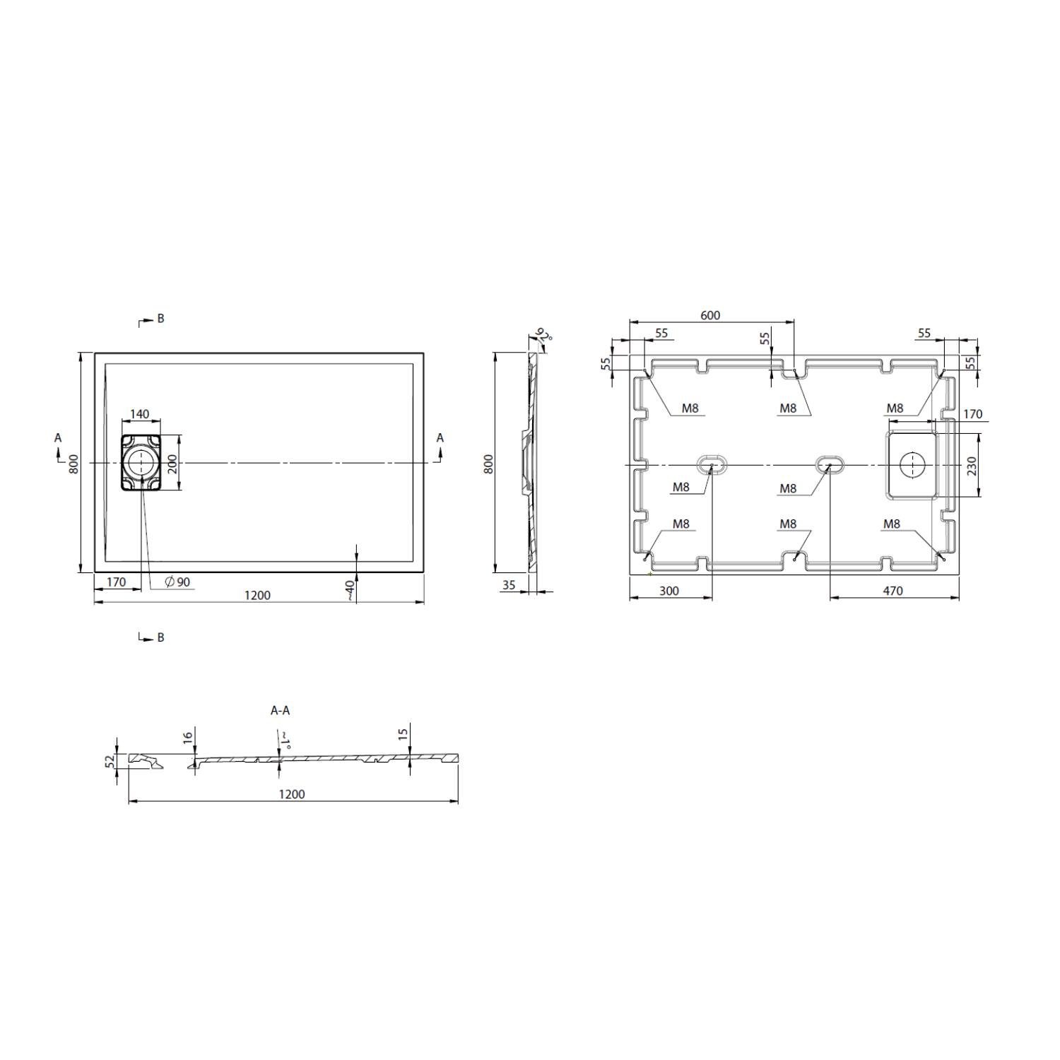De Acora douchebak is voorzien van een gootcover waardoor de afvoer niet zichtbaar is. De douchebak is verkrijgbaar in verschillende maten.