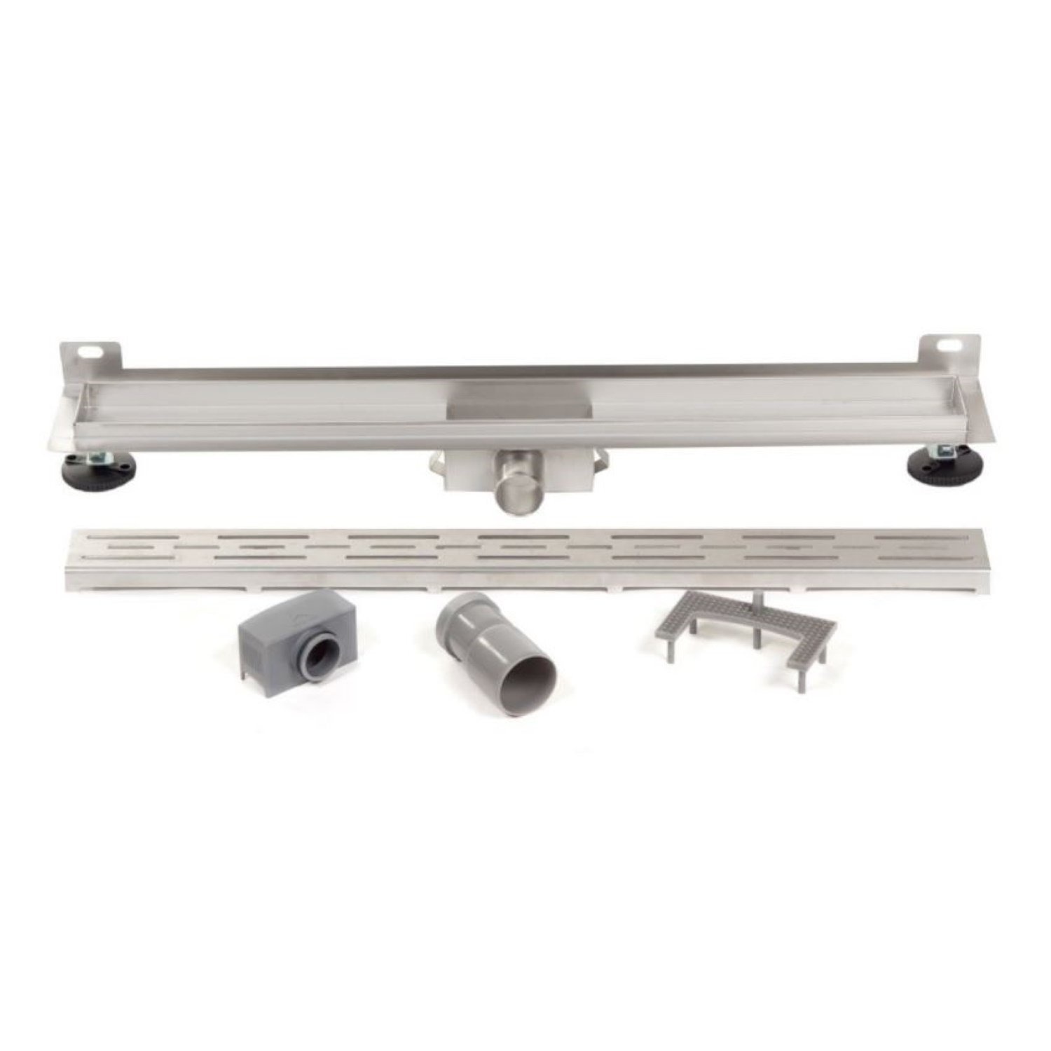 De douchegoot is de absolute trend van dit moment en eigenlijk niet meer weg te denken uit de moderne badkamer. De vervanger van de doucheput zorgt er met het moderne design en het strakke uiterlijk voor, dat de puntjes op de i worden gezet bij u in de badkamer. De douchegoot heeft een watercapaciteit van 30L/min en wordt geleverd inclusief verstelbare pootjes. Met de verstelbare pootjes kunt u de douchegoot in hoogte naar wens afstellen. Ook wordt de douchegoot geleverd inclusief sifon (kunststof), waterdichtdoek en een sleutel om het rooster er gemakkelijk uit te halen wanneer nodig.
