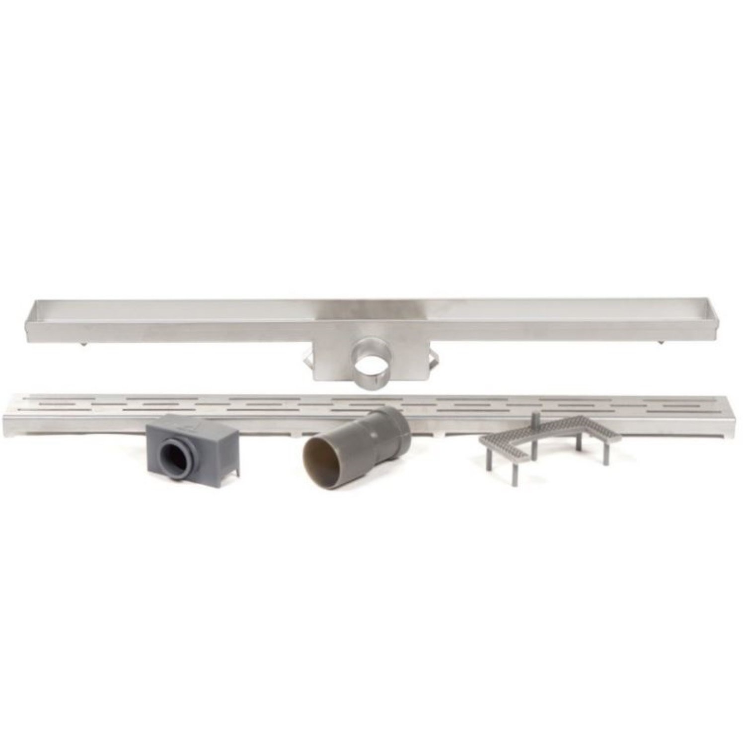 De douchegoot is de vervanger van de ouderwetse doucheput. Met de douchegoot kiest u voor een moderne aanpassing in uw badkamer. De douchegoot heeft een strakke, moderne uitstraling en wordt geplaatst als rooster in de vloer van uw douche. De douchegoot heeft een watercapaciteit van 30L/min, waardoor het water vlot en vloeiend in het rooster weg kan lopen. Daarnaast is de douchegoot volledig gemaakt van RVS en heeft een RVS geborsteld uiterlijk. Deze douchegoot wordt geleverd zonder flens, hierdoor kunt u het beton rechtstreeks tegen de douchegoot aan smeren en uw tegels daar bovenop.