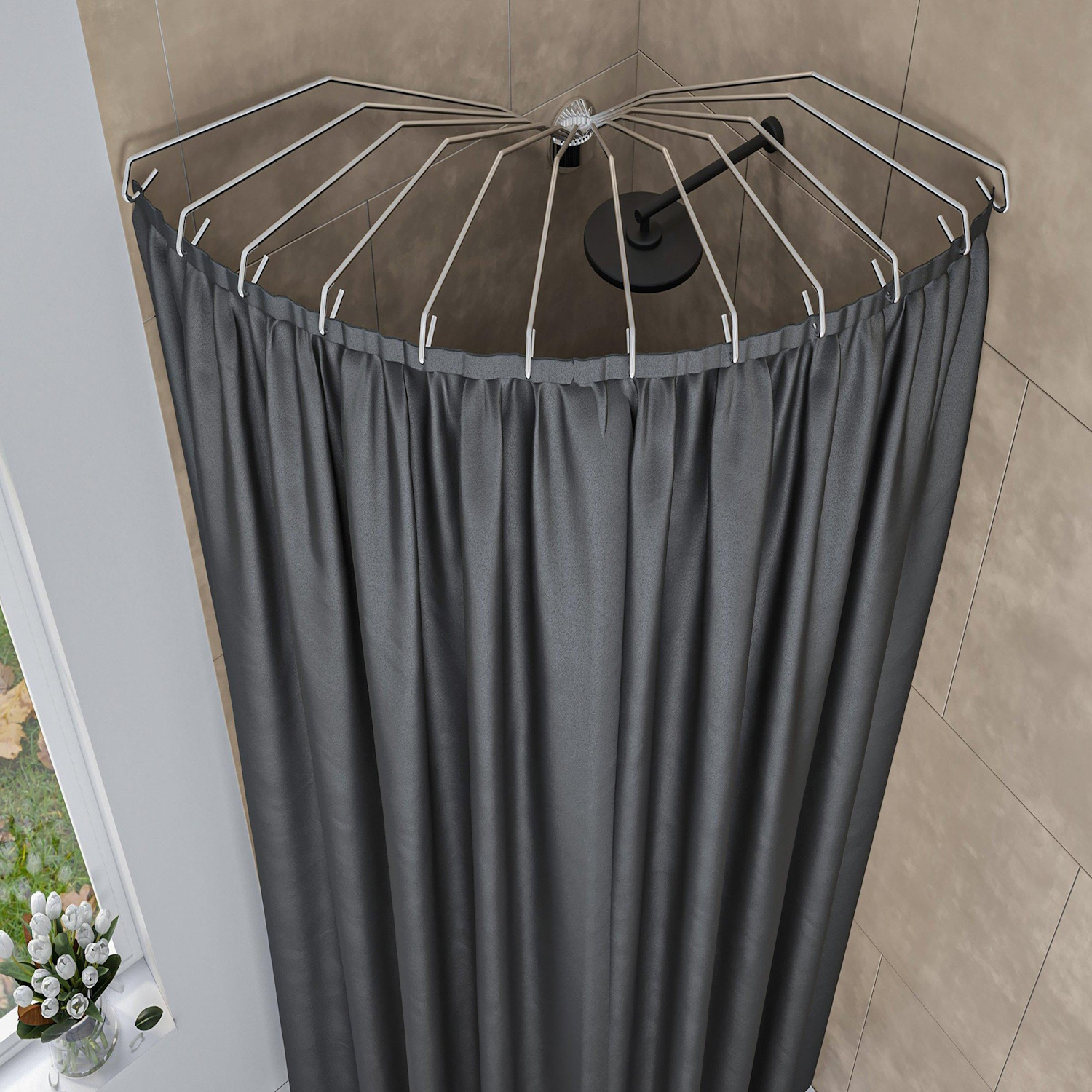 Deze Umbrella douchegordijnstangset is de ideale oplossing voor de kleinere badkamer. De set bestaat uit een paraplu systeem waar u uw douchegordijn aan hangt. U kunt uw douchegordijn gemakkelijk heen en weer schuiven. Het systeem is geschikt voor verschillende doucheruimtes, een hoek, tegen de muur, of in combinatie met een bad, het is allemaal mogelijk! De 12 steunen kunnen zich spreiden over een maximale breedte van 155 cm.