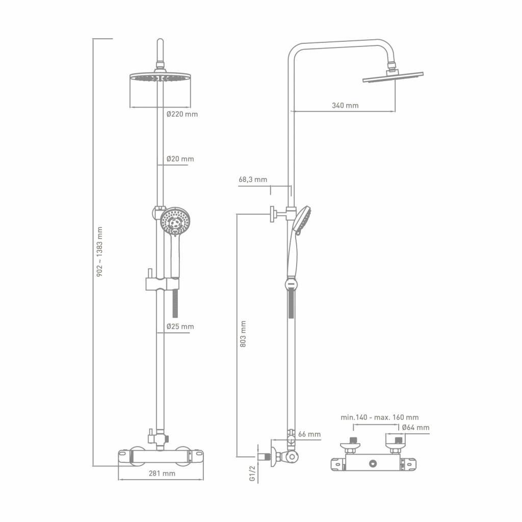 Daarnaast is de douchekolom voorzien van een mooie thermostaatkraan om de set mee af te maken. Het fijne van een thermostaatkraan, is dat het door u ingestelde temperatuur van het water exact gelijk blijft. Via thermostatische kleppen wordt het koude en hete water zo gemengd, dat het water een constante temperatuur heeft. Wanneer de watertoevoer wijzigt, reageert de thermostaat direct, waardoor de temperatuur van het water gelijk blijft.