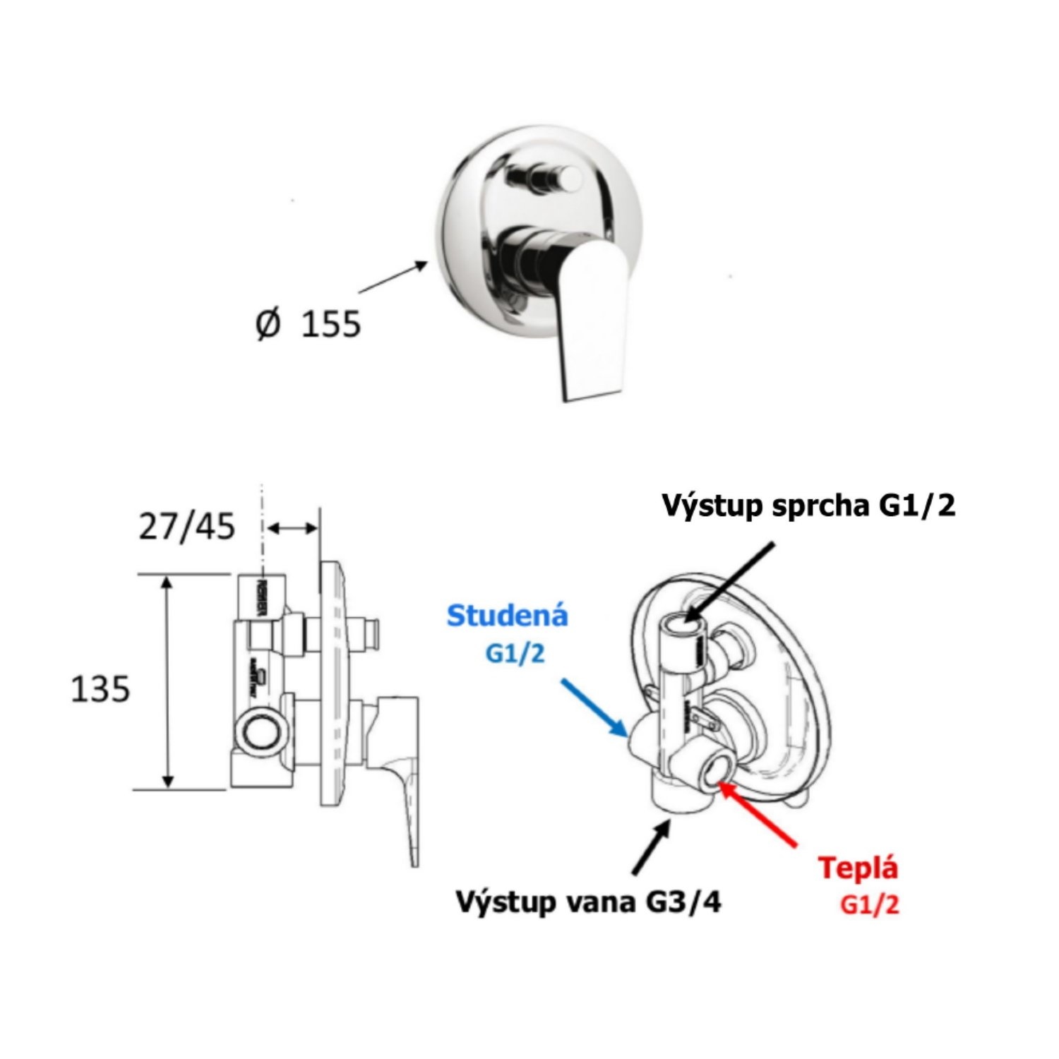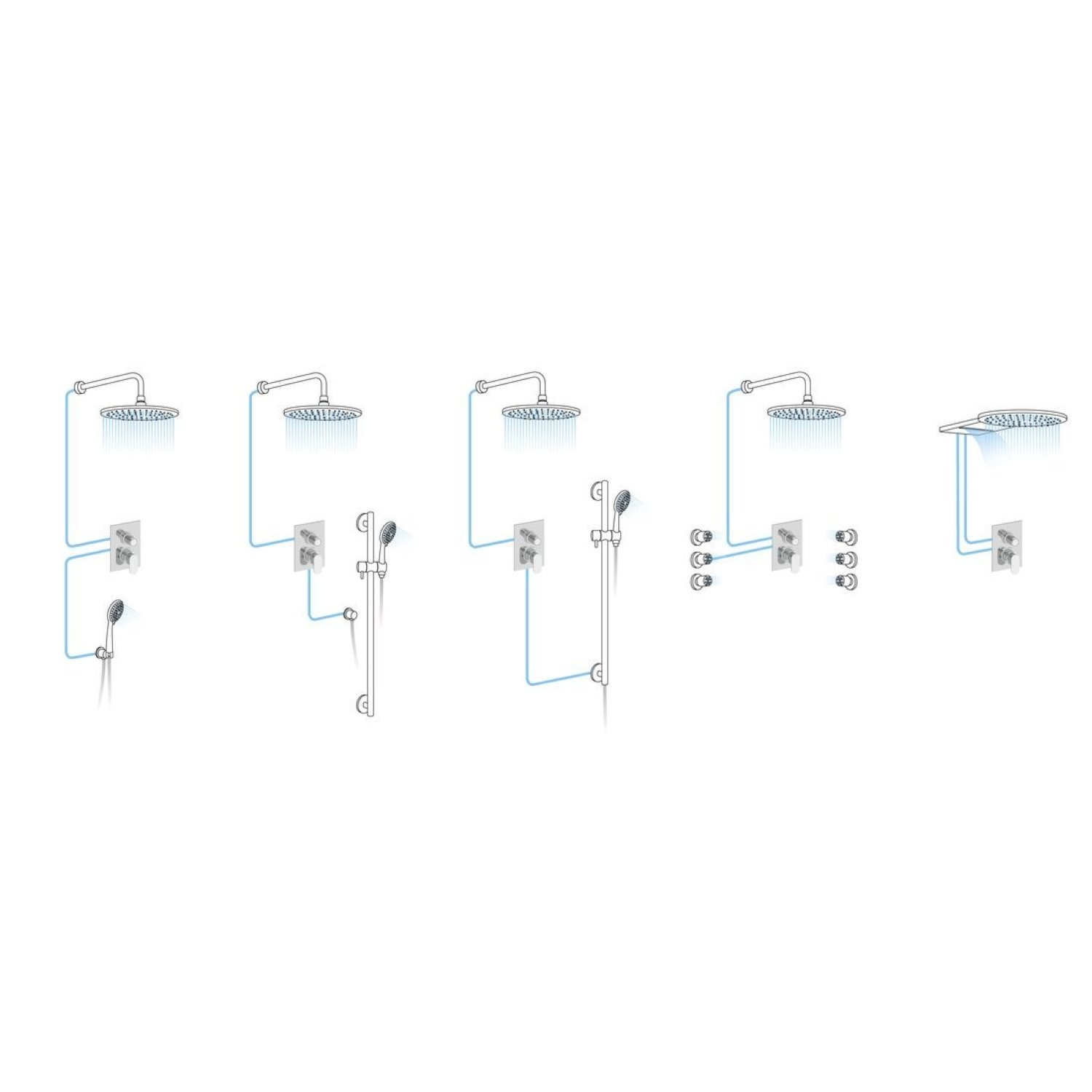De mengkraan bestaat uit 2 bedieningen. Met de hendel bedien je de mengkraan, naar links of rechts draaien geeft dan warmer of kouder water, en door de hendel de andere kant op te bedienen om de kraan harder en zachter zetten. De knop erboven gebruik je om te wisselen van de handdouche naar de hoofddouche en weer terug. Deze luxe is ideaal voor als u even heerlijk wilt ontspannen. De aftappunten zijn niet gelijktijdig te gebruiken.
