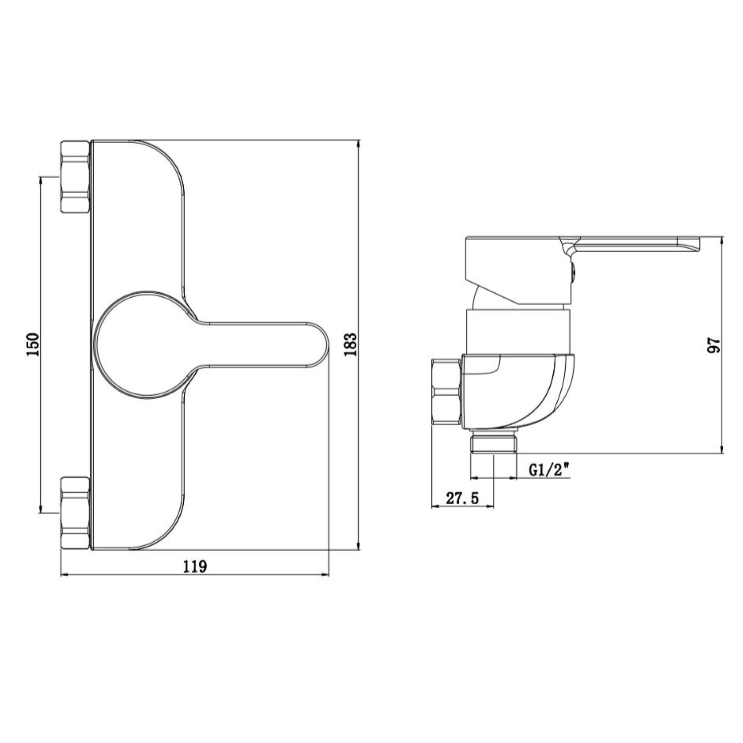 De aansluiting voor de doucheslang is 1/2", en de kraan heeft een hart-op-hart afstand van 15 cm. Let op dat uw badkamer dezelfde aansluiting heeft, dit is de afstand tussen het linker en het rechter aansluitpunt van de kraan.