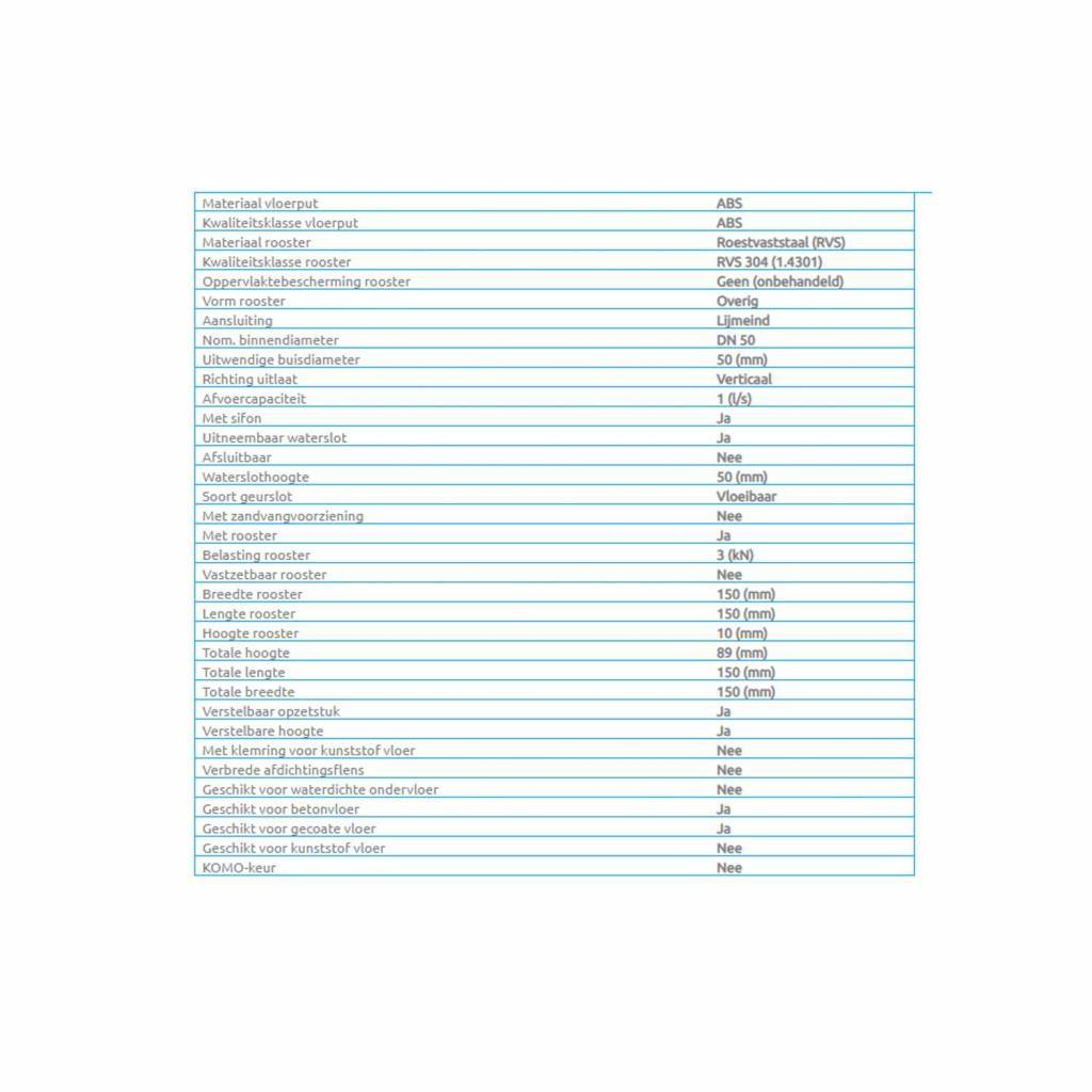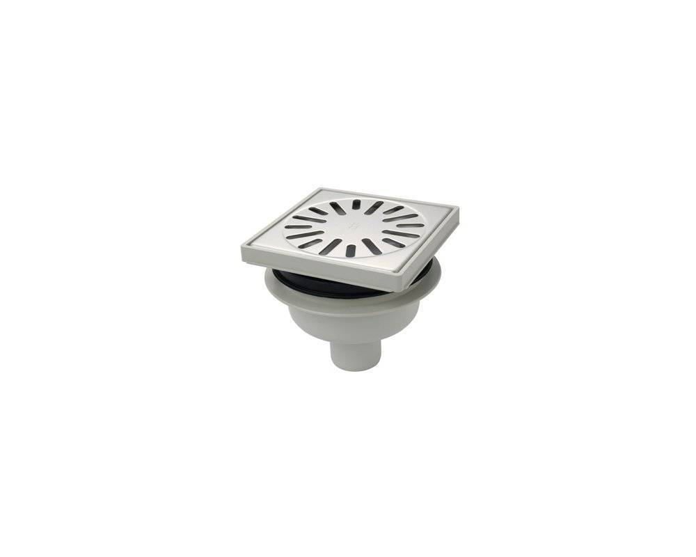 Aquaberg ABS vloerput m. ABS opzetstuk m. RVS rooster m. onderuitl. Ø50mm verstelbaar 150x150mm m. PPC reukafsluiter, reukslot 50mm 4015