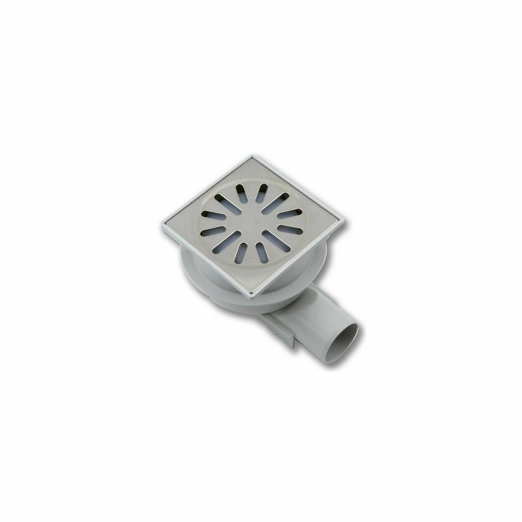 Aquaberg ABS vloerput m. RVS rooster m. onderuitl. Ø50mm en zijuitl. Ø40mm 100x100mm m. PPC reukafsluiter, reukslot 37mm 4240