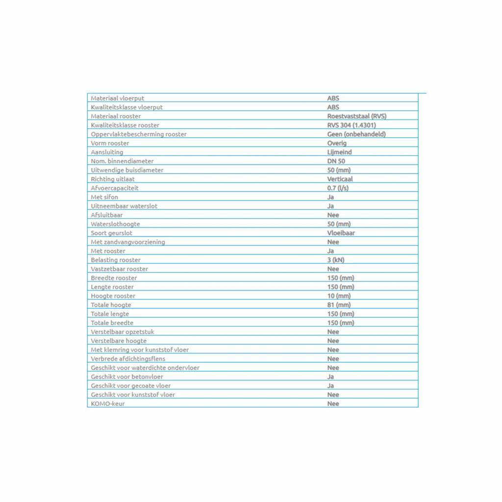 Aquaberg ABS vloerput m. RVS rooster m. RVS sierrand m. onderuitl. Ø50mm 150x150mm m. PPC reukafsluiter, reukslot 50mm 4215R