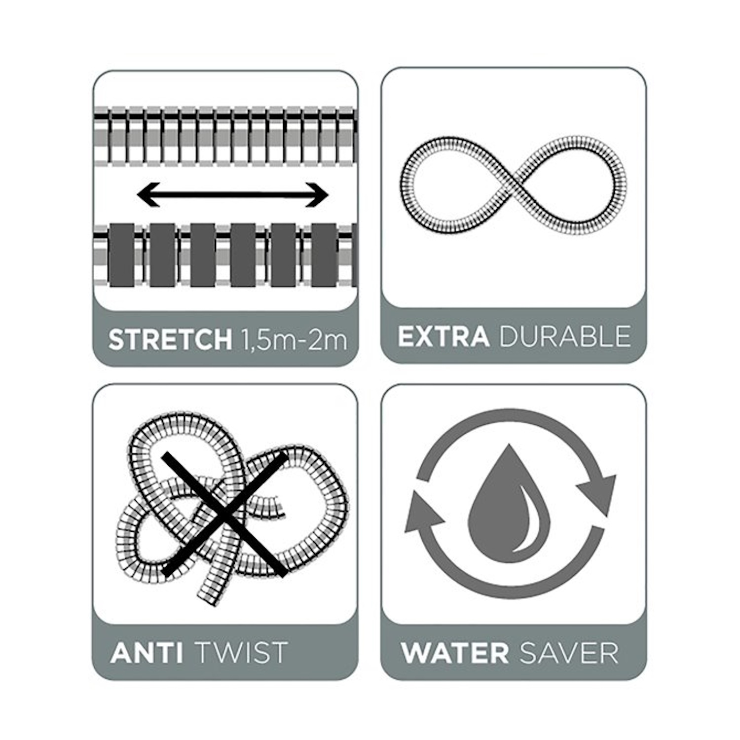 De doucheslang uit de Excellence collectie van Tiger geeft u meer beweegruimte dan ooit! Deze unieke doucheslang krulte niet, knikt niet en beweegt daardoor makkelijk met elke beweging mee. De slang heeft een lengte van 150 cm maar is uitrekbaar tot 200 cm. Verder is de slangkoppeling voorzien van een rubberen ring wat zorgt voor meer stabiliteit en past de slang op elke ganddouche en kraan. De doucheslang is bovendien extra duurzaam! U bespaart tot maar liefst 50% waterverbruik, zonder comfort te verliezen tijdens het douchen.