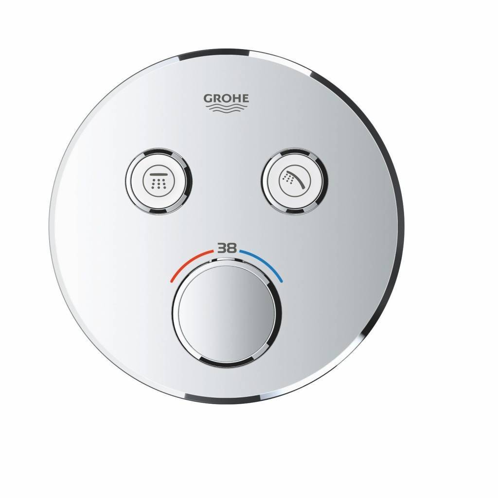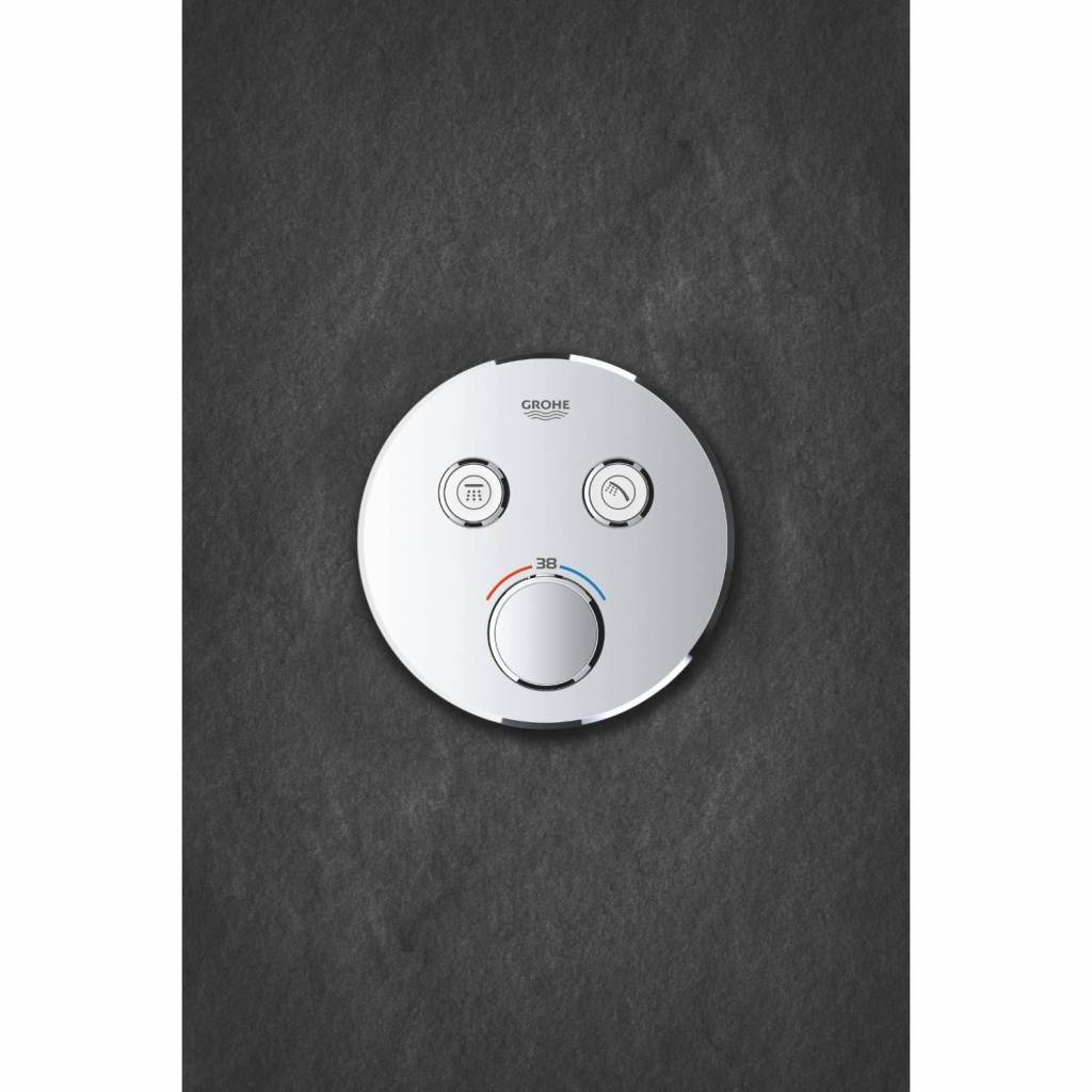 GROHE EasyLogic iconen (met uitwisselbare symbolen) maken de bediening makkelijk en intuïtief. Geschikt voor het hele gezin, want met de GROHE SafeStop knop wordt de temperatuur nooit ongewenst hoger dan 38° C om te voorkomen dat je je verbrandt. Met de optionele temperatuurbegrenzer GROHE SafeStop Plus kan je een extra limiet van 43° C toevoegen als extra veiligheid. De waterbesparende GROHE EcoJoy-technologie biedt je de mogelijkheid om minder water te gebruiken zonder aan comfort in te leveren. Dankzij het GROHE QuickFix systeem is hij snel en eenvoudig te installeren. Het slanke profiel maakt hem makkelijk om schoon te houden en de schitterende, duurzame GROHE StarLight-chroomafwerking zal er jarenlang perfect uit blijven zien. Met een slank, rond ontwerp is hij perfect voor die minimalistische, gestroomlijnde look en zal hij ongetwijfeld de badkamer mooier maken. Houd er rekening mee dat dit product in combinatie met de GROHE Rapido SmartBox (35600000) moet worden geïnstalleerd.