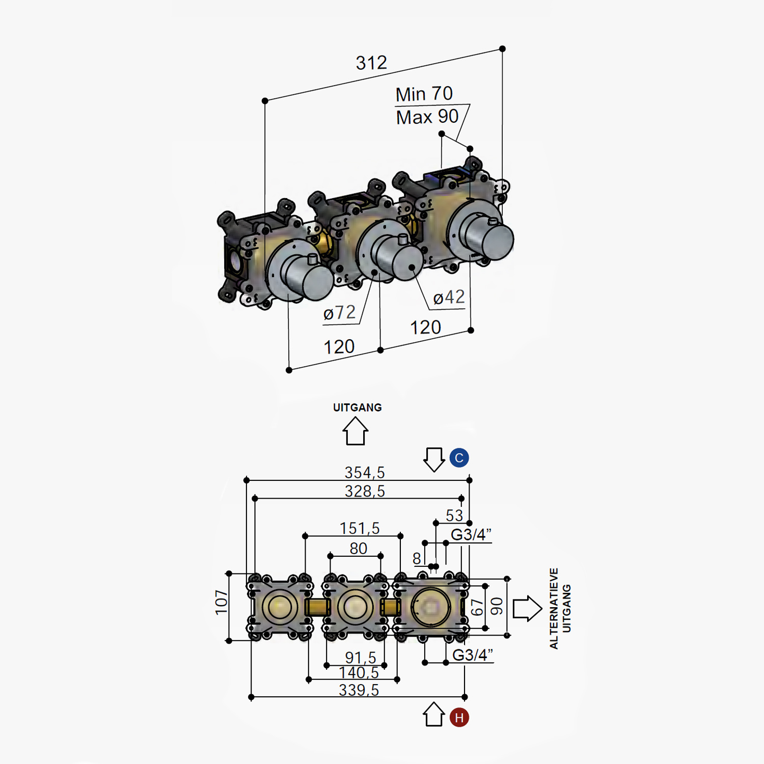 Op zoek naar een design inbouw douchekraan? Kies dan voor deze beauty! Deze thermostatische kraan is de eyecatcher van uw badkamer! De thermostaat heeft een 3/4" aansluiting met 2 stopkranen en is te combineren met alle andere onderdelen van de Hotbath Cobber serie. Zo zijn er douchekranen, badkranen, wastafelkranen en zelfs de bidetkranen mogelijk. Doordat de kraan is voorzien van een unieke kruisgreep, kunt u de douchekraan comfortabel en nauwkeurig bedienen.