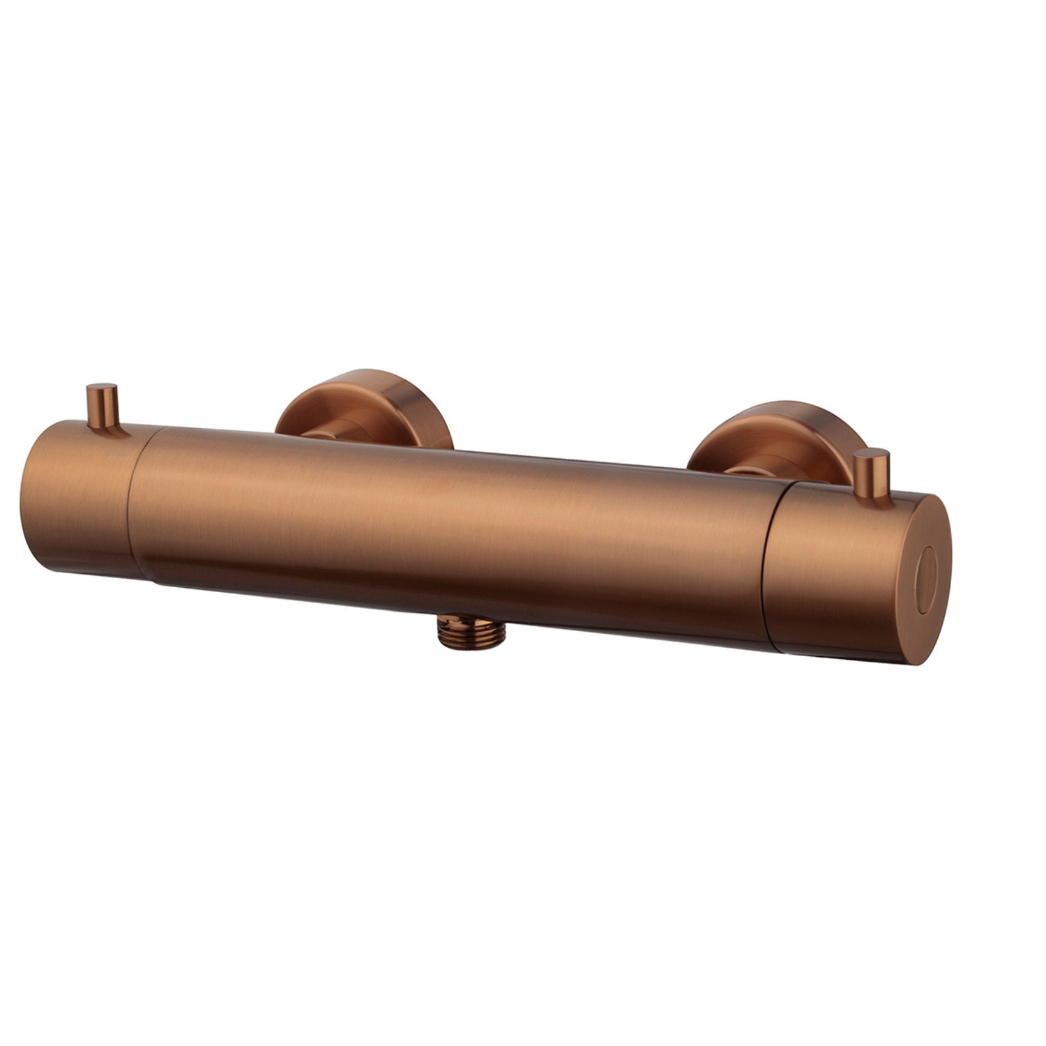 Deze douchethermostaat bedient u met twee draaiknoppen. Met de ene knop draait u de kraan open en dicht en met de andere knop bepaalt u de temperatuur. De kraan heeft een koperen kleur. Hij heeft een lengte van 29,2 cm en een diepte van 10,45 cm.