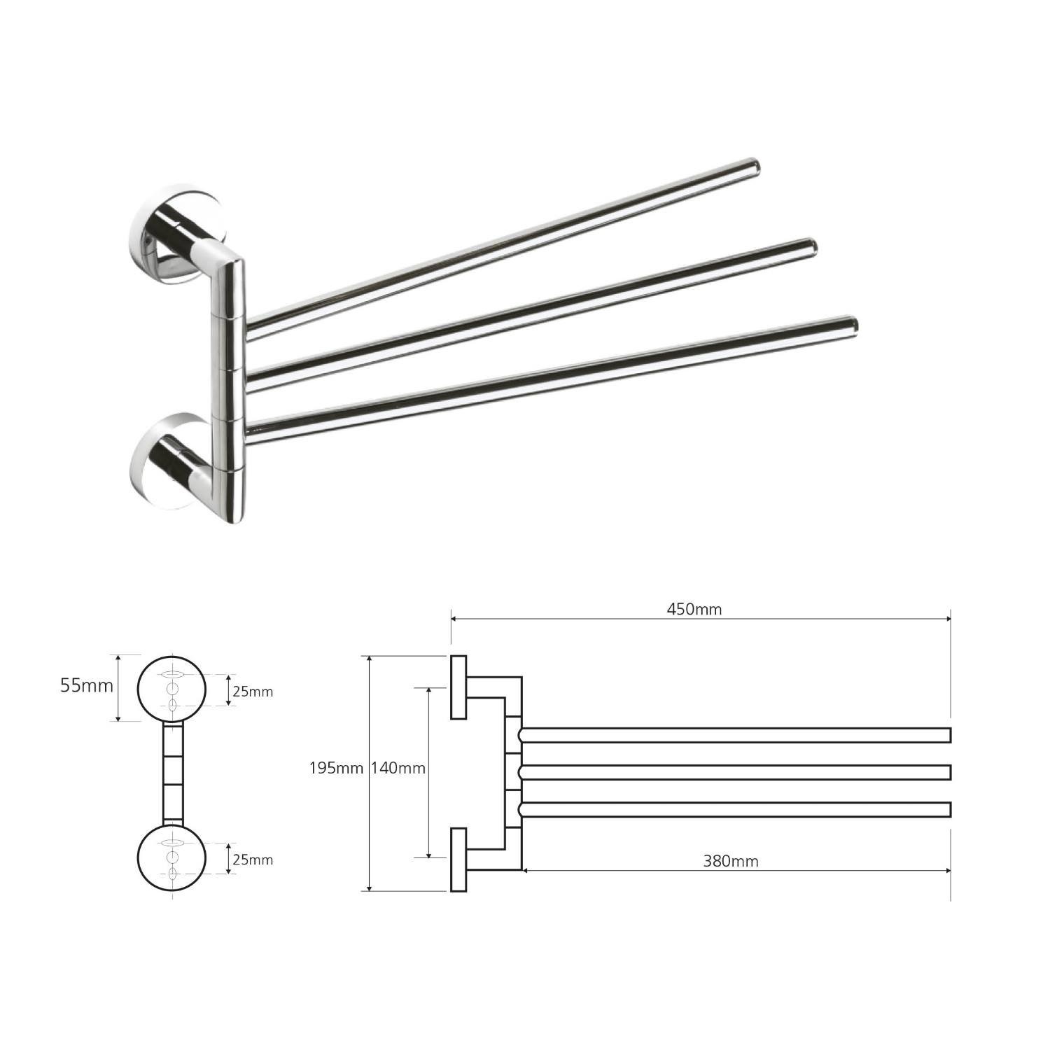 Drievoudige Handdoekhouder Sapho X-Round Draaibaar 45 cm Chroom