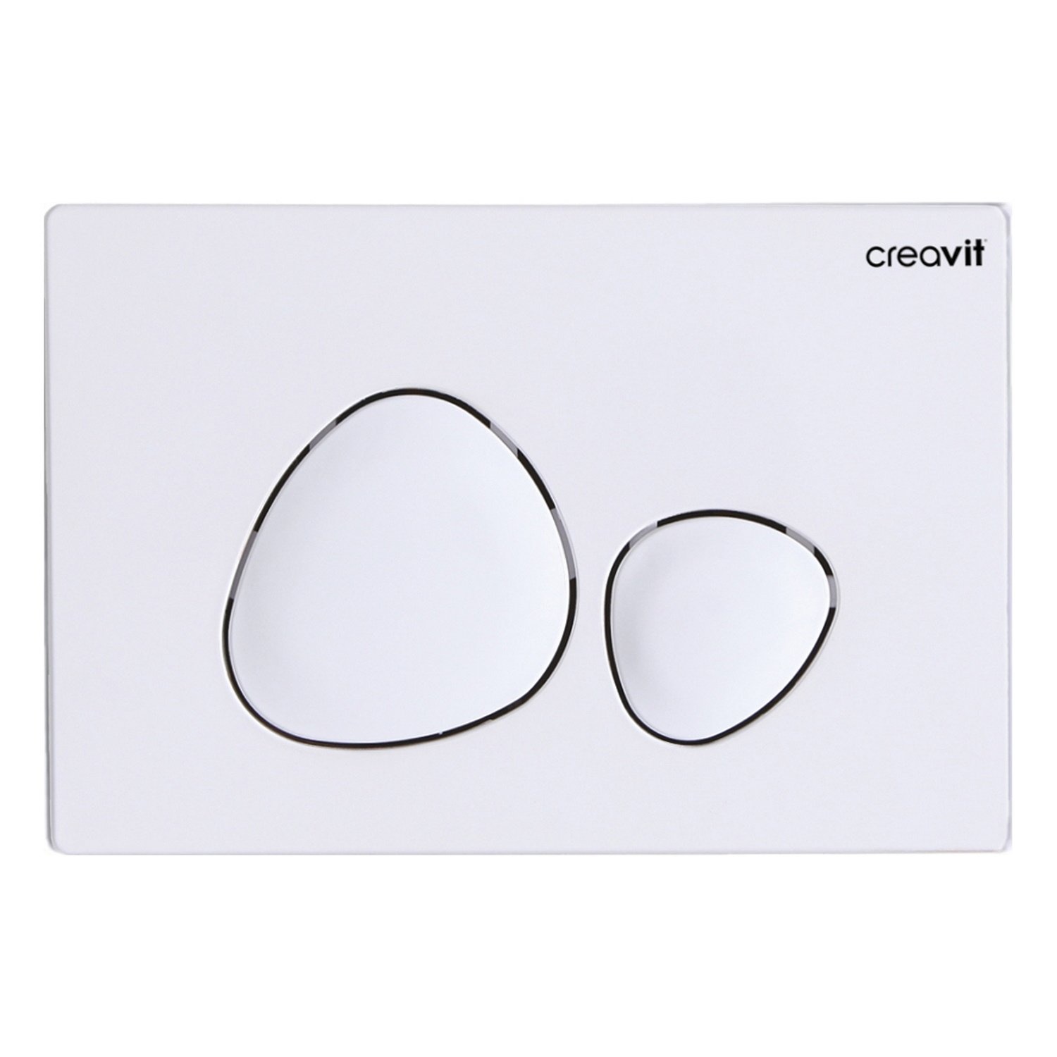 De drukplaat van Creavit uit de Ore serie is voorzien van 2-knopsbediening waarmee u het toilet kunt doorspoelen. Door de keuze tussen 2 knoppen bepaald u de hoeveelheid water waarmee er wordt doorgespoeld.