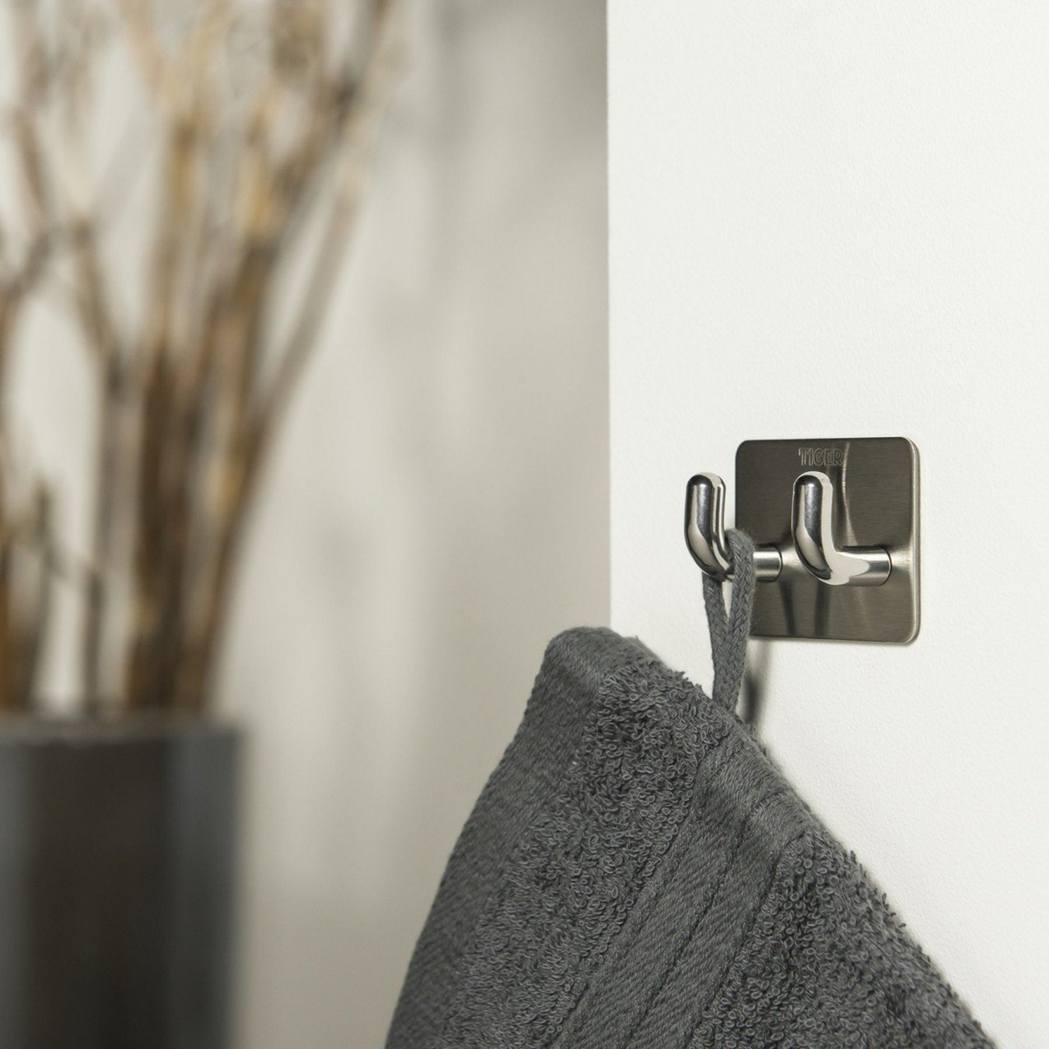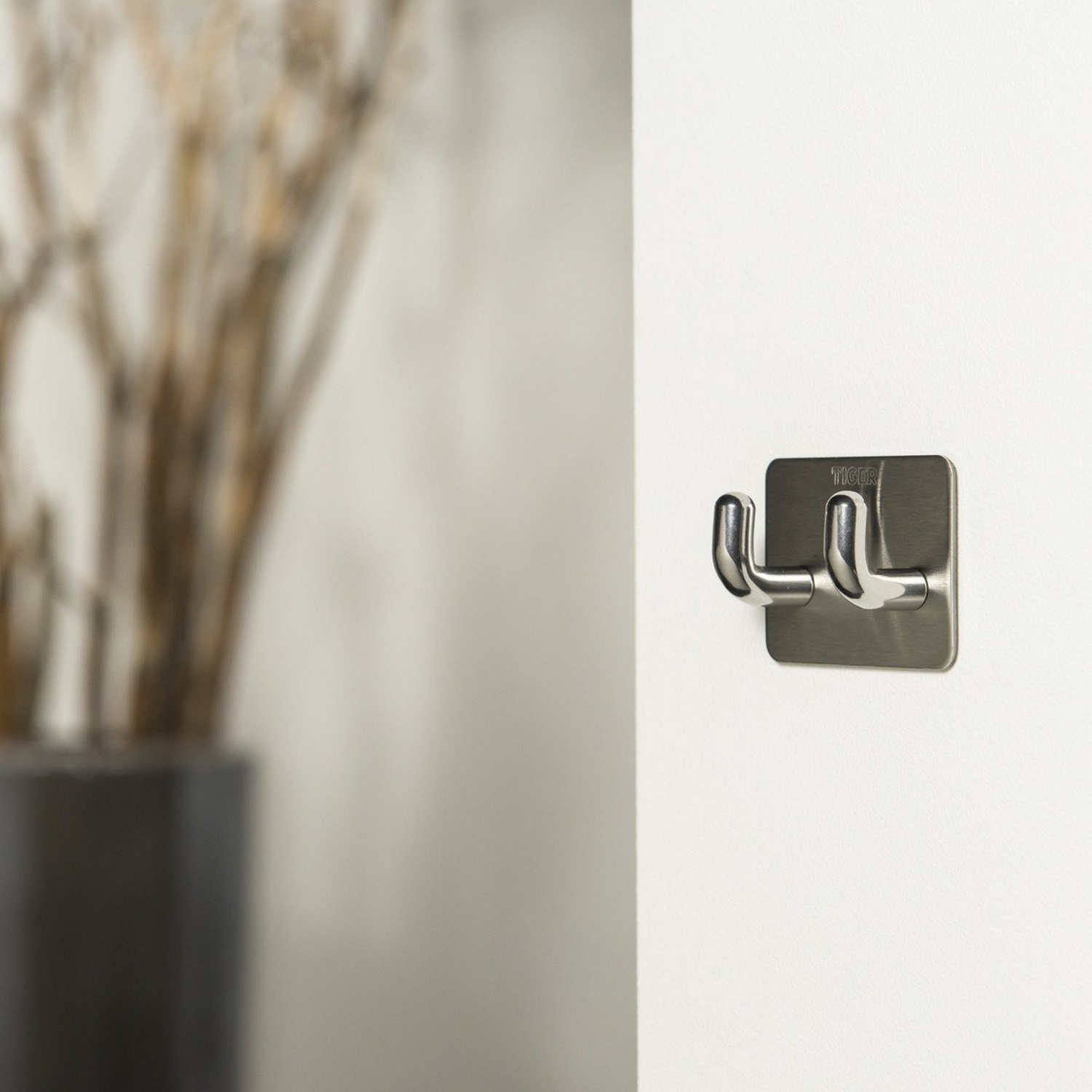 Deze stijlvolle haak van het merk Tiger is gemaakt van gepolijst geborsteld staal, het materiaal is licht mat zilver van kleur. De 2-delige haak is eenvoudig te bevestigen met de bijgeleverde plakstrip. De haak kan worden gebruikt voor het ophangen van bijvoorbeeld uw handdoek en/of badjas en heeft een moderne uitstraling. De producten van het merk Tiger zijn allen voorzien van 5 jaar fabrieksgarantie.