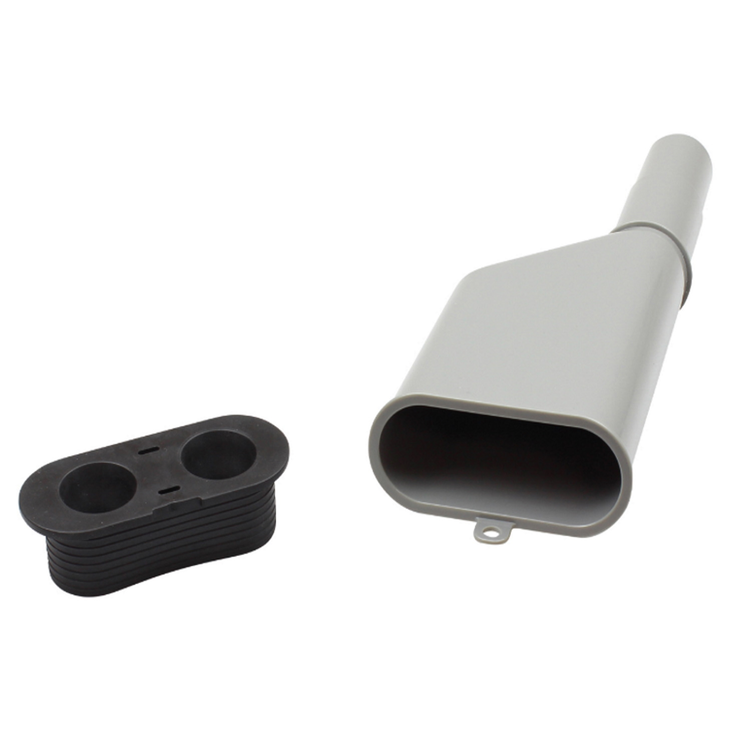 Deze nieuwe grijze duo afvoer voor wasmachine en droger is afkomstig van BWS. Het afsluitrubber in deze nieuwe afvoer zorgt ervoor dat nare rioolluchtjes tot het verleden behoren.