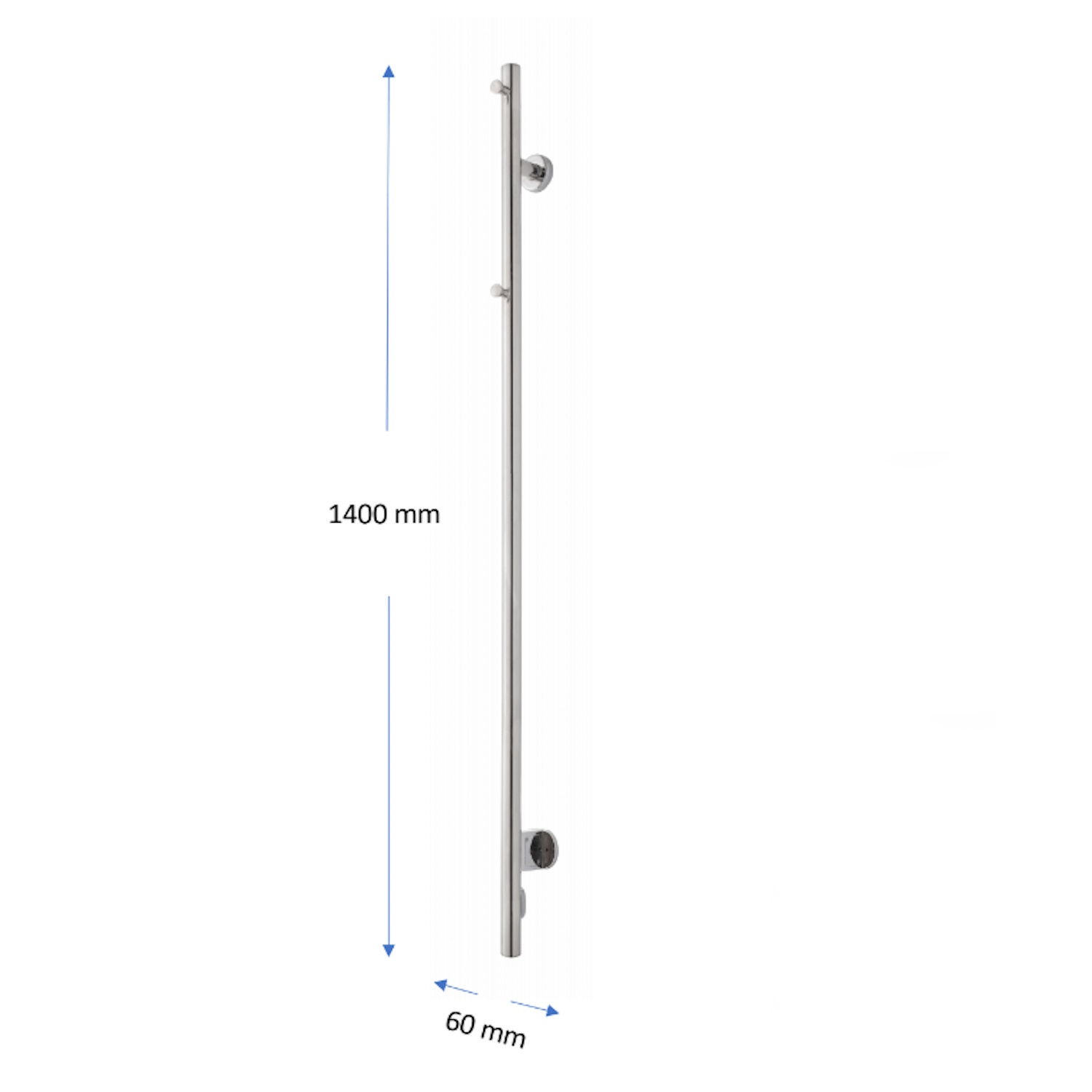 Bent u op zoek naar een elektrische radiator voor in uw badkamer? Dan is deze radiator van TVS uit de serie Eldo 1 helemaal iets voor u. Deze RVS, ronde radiator is 140 cm hoog en 6 cm breed. Er zitten aan de achterkant van deze radiator 2 bevestigingspunten om hem aan de muur te kunnen hangen. Er zitten 2 haakjes aan de radiator waar u uw handdoek op kunt hangen. Deze radiator heeft een ingebouwde thermostaat dat de temperatuur tussen de 45 en 55 graden houdt. Ook zit er een timer functie op waarbij u kunt kiezen wanneer de radiator uitschakelt, dit kan na 2 of 4 uur zijn. Hierdoor kunt u hem ook niet vergeten uit te zetten. Door zijn strakke design past hij in elke badkamer en heeft u altijd een warme handdoek na het douchen.