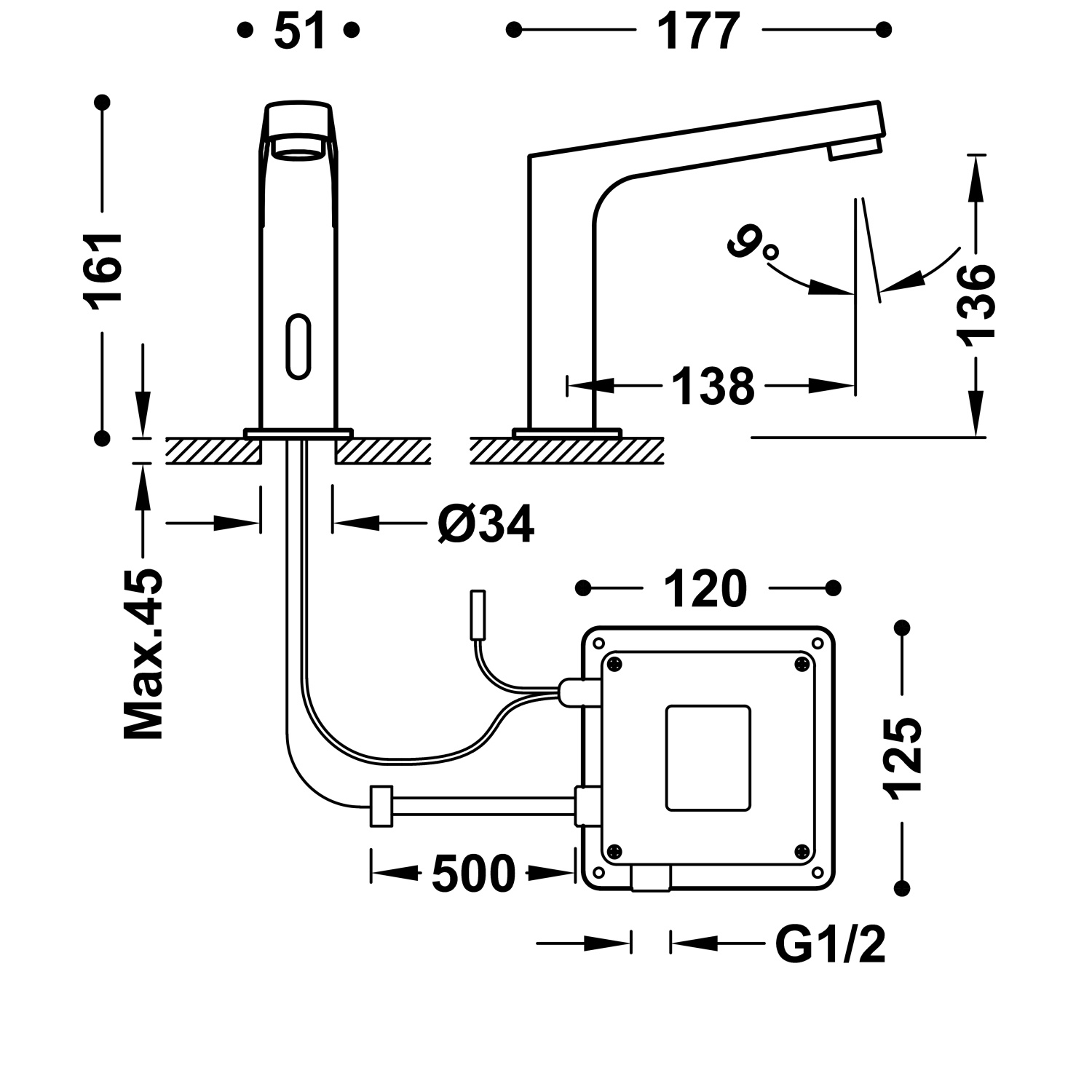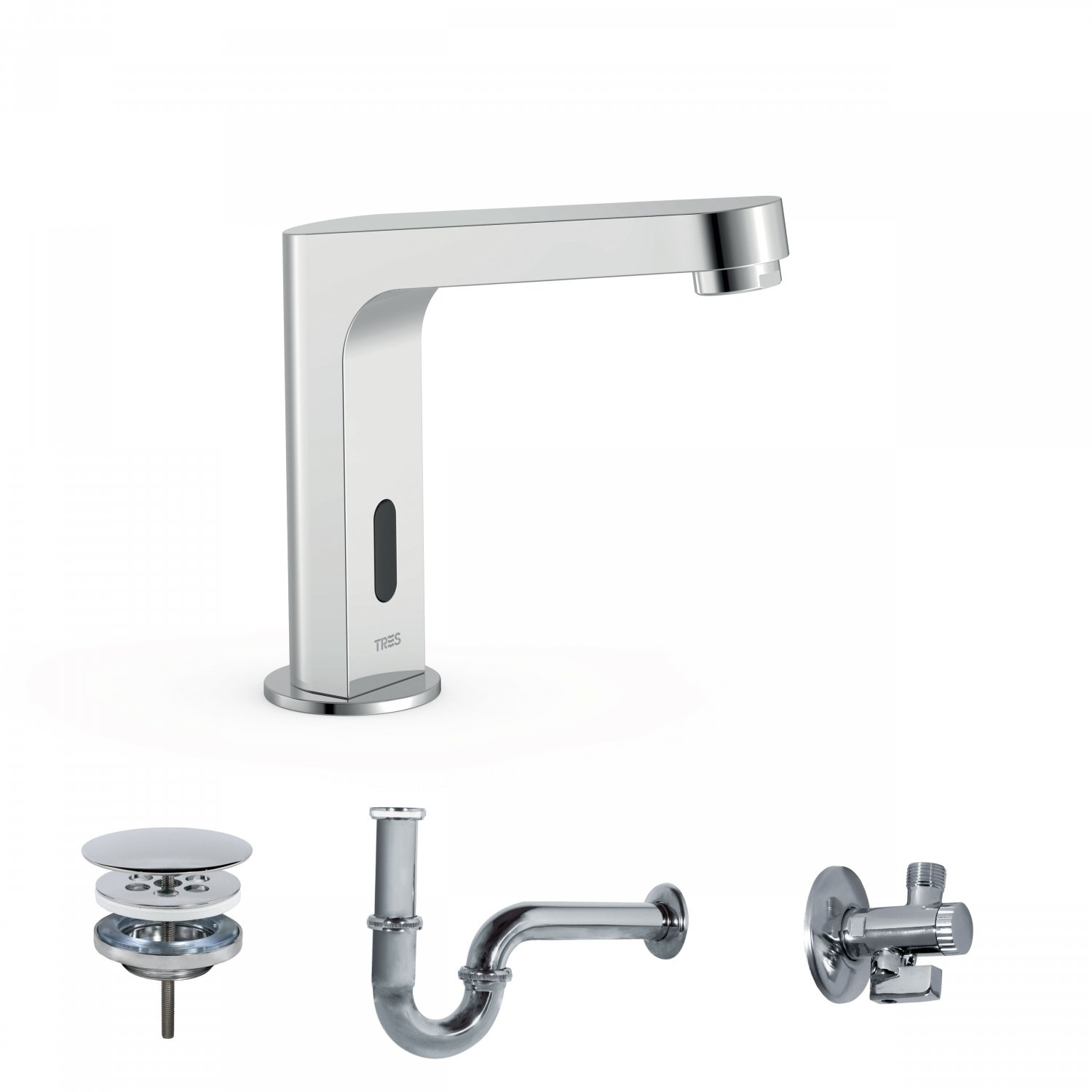 Deze elektronische fonteinkraan van de serie 'Tempo Base' van Tres is een hygiënische en duurzame keuze. De kraan heeft een infraroodsensor. Als u uw hand daarvoor houdt, gaat de kraan aan. Vervolgens gaat deze automatisch weer uit. U hoeft de kraan dus niet aan te raken en u verspilt geen water.