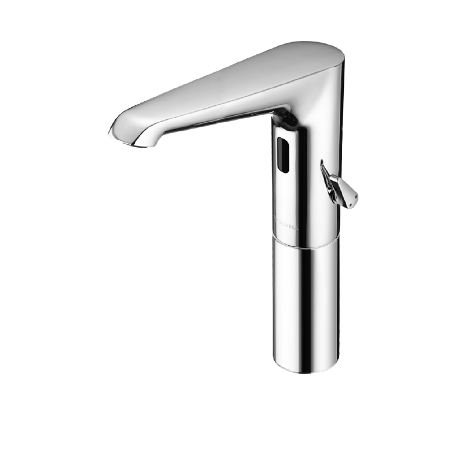 De Xeris HD-M wastafelmengkraan is van het merk Schell en kent een elektronische uitvoering. Met behulp van de infrarood-sensor die zich in de kraan bevindt schakelt u deze eenvoudig aan. De mengkraan is gemaakt van messing en is afgewerkt in een glanzend chromen kleur. De wastafelkraan is een hoog model en heeft een hoogte van 28 cm. De diameter van het kraangat bedraagt 33 mm: houd hier dus rekening mee bij het monteren van de kraan op een wastafel.