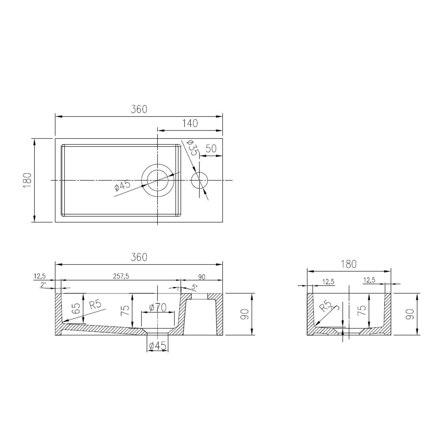De fontein heeft een mat witte kleur en is 36 cm breed, 18 cm diep en 9 cm hoog. Het oppervlak van de wastafel voelt prettig aan en is makkelijk schoon te maken en te onderhouden.
