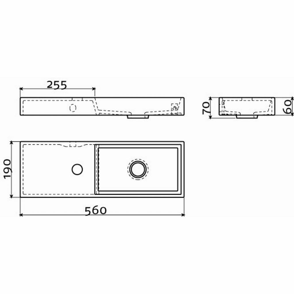 U kunt de fontein zowel hangend aan de muur plaatsen alswel als opzetwasfontein monteren. De fontein wordt geleverd met 1 kraangat. De fontein wordt geleverd zonder afvoerplug. Speciale kleinere afvoerpluggen moeten besteld worden.