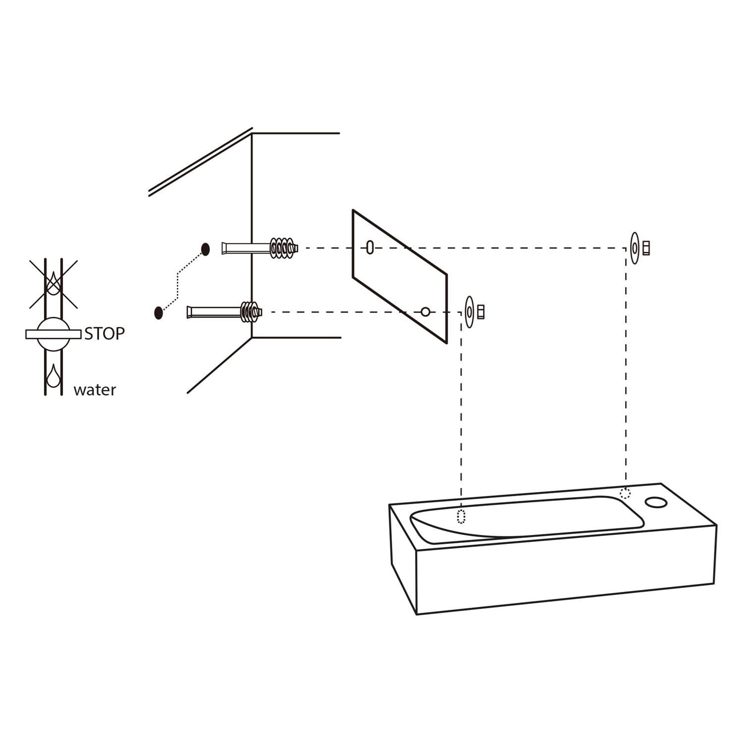 De wastafel is enkel op een manier te plaatsen namelijk recht tegen de muur met de zijkant. De bevestigingspunten bevinden zich uit het zicht.
