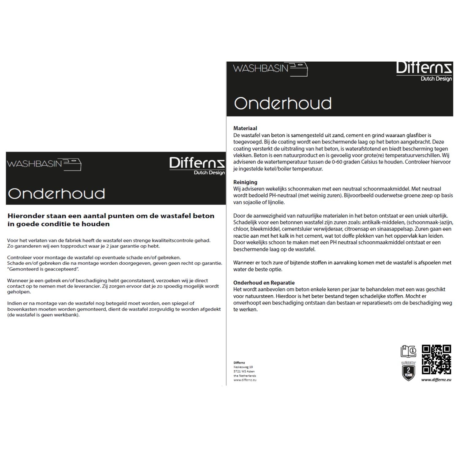 De fontein van Differnz uit de serie Doni heeft met zijn compacte afmeting een onmisbaar plekje in uw toiletruimte. Met een breedte van 36 cm, een diepte van 16 cm en een hoogte van 8 cm kunt u de handen goed wassen in de wasbak. De wasbak is gemaakt van beton en geeft uw toiletruimte een stoere en industriële uitstraling. Combineer de wasbak bijvoorbeeld met een matzwarte kraan en zwarte sifon voor een stoere sfeer. Of kies juist voor een goud of koperkleurige kraan en sifon voor een wat luxere sfeer!