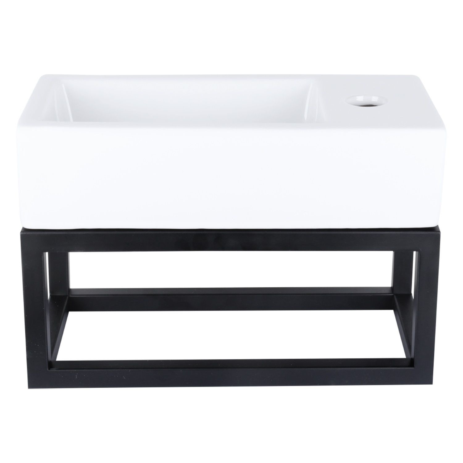 De wastafel is enkel op een manier te plaatsen namelijk recht tegen de muur met de zijkant.