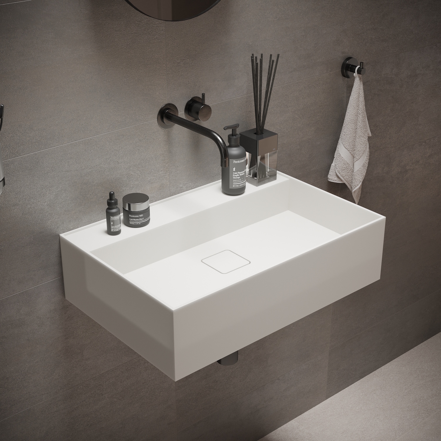 Solid Surface is uitstekend geschikt om sanitaire producten van te maken omdat het geen poriën en naden heeft. Solid Surface is een composiet, geproduceerd uit mineralen en harsen. Bovendien is dit materiaal bestendig tegen vocht, vlekken, en zelfs chemische stoffen. Er trekt dus niets in, is niet poreus en heeft een intense kleur en is gemakkelijk schoon te houden. Omdat het door en door van hetzelfde materiaal bestaat, kunnen eventuele beschadigingen weg gepolijst worden. Perfect om de hygiëne te behouden in uw design badkamer of toilet.
