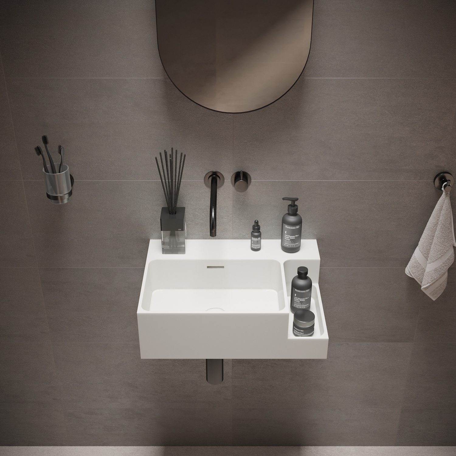 Solid Surface is uitstekend geschikt om sanitaire producten van te maken omdat het geen poriën en naden heeft. Solid Surface is een composiet, geproduceerd uit mineralen en harsen. Bovendien is dit materiaal bestendig tegen vocht, vlekken, en zelfs chemische stoffen. Er trekt dus niets in, is niet poreus en heeft een intense kleur en is gemakkelijk schoon te houden. Omdat het door en door van hetzelfde materiaal bestaat, kunnen eventuele beschadigingen weg gepolijst worden. Perfect om de hygiëne te behouden in uw design badkamer of toilet.