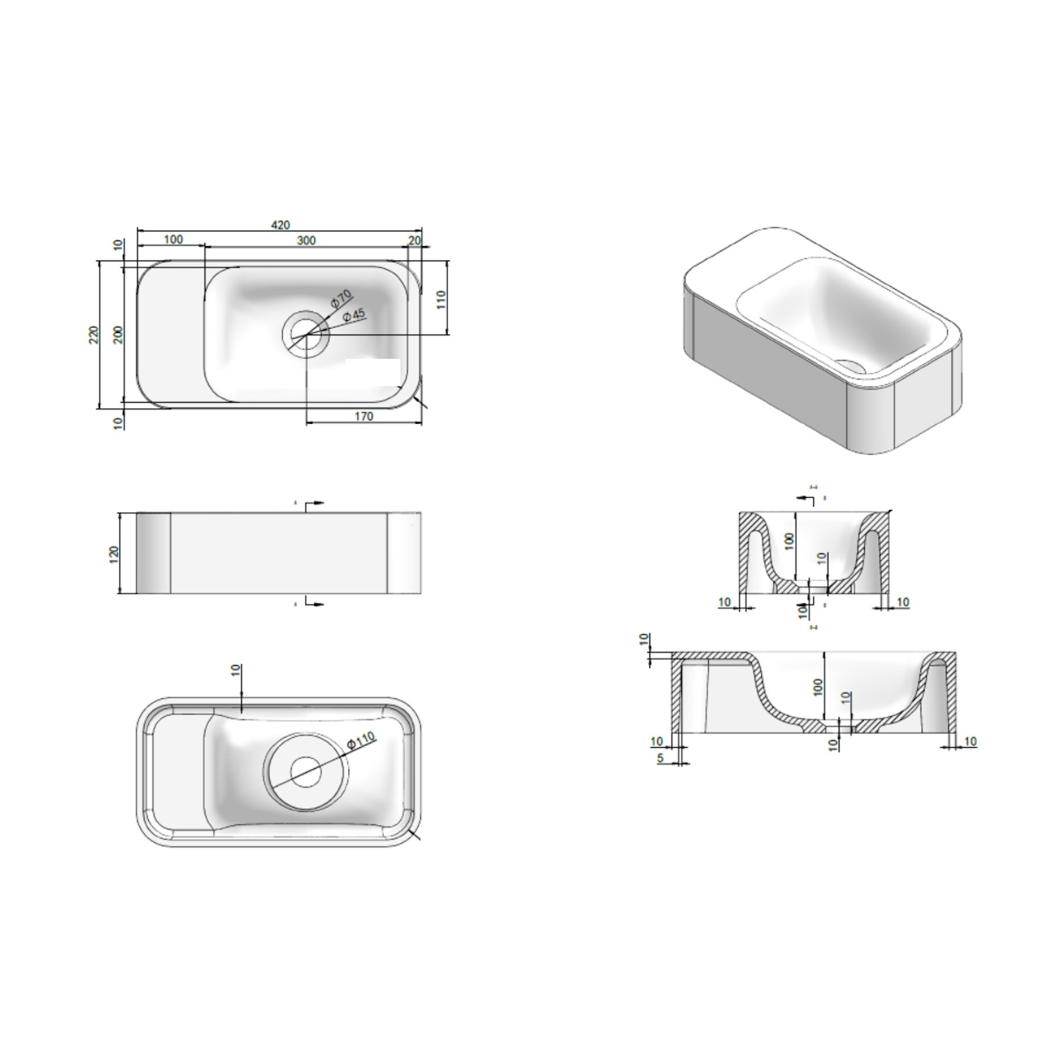 Het fontein bevat geen kraangat, deze dient u zelf te doorboren. U kunt de fontein zowel links als rechts plaatsen.