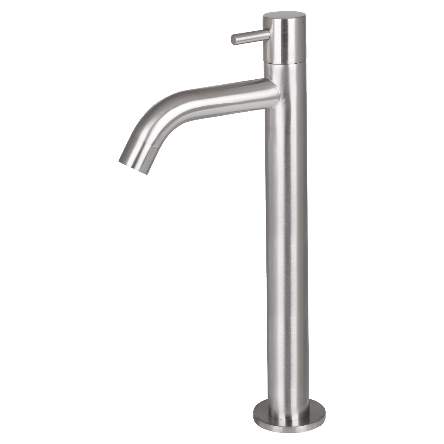 De kraan is 28.5 cm hoog en heeft een uitloop van 11.5 cm. De kraan geeft alleen koudwater.