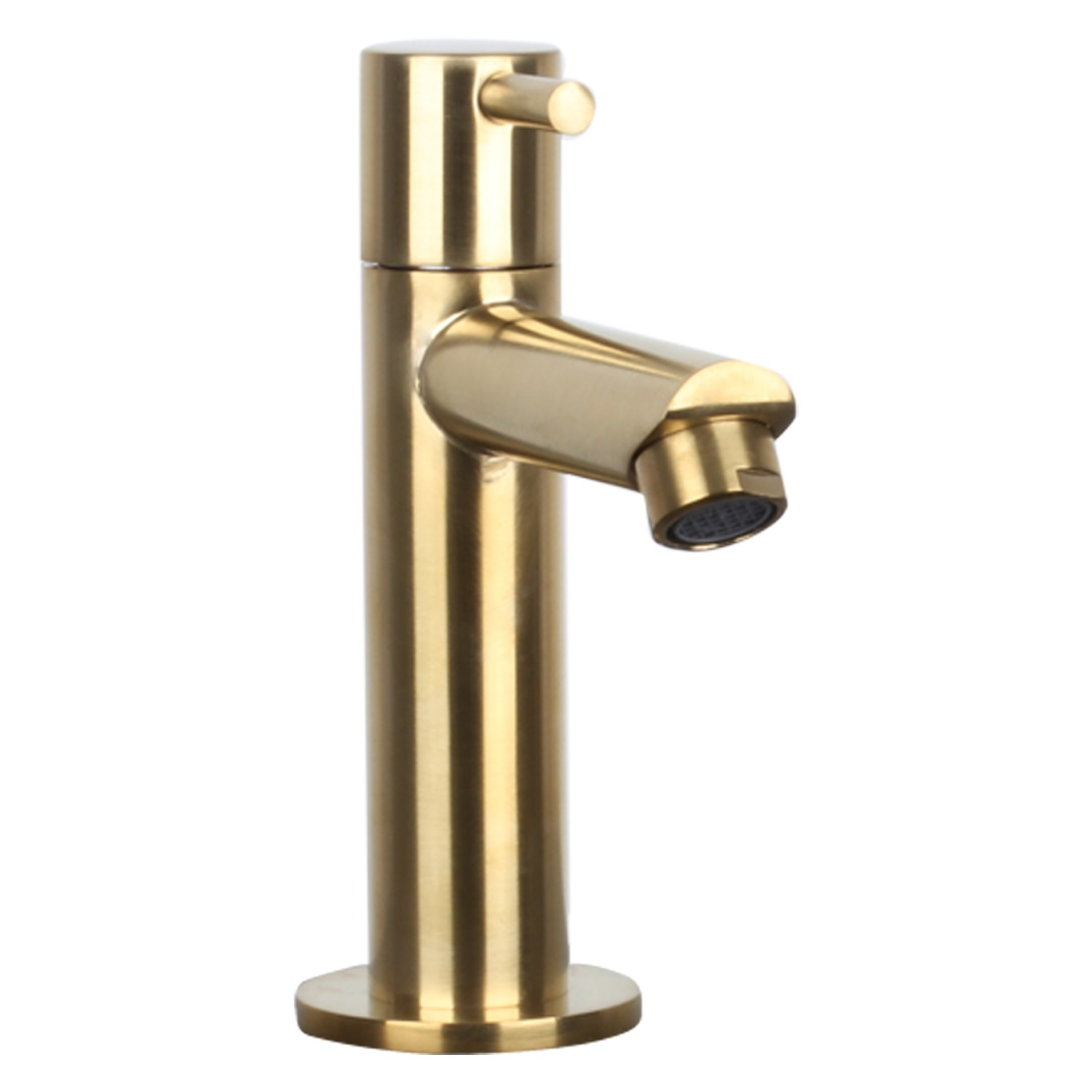 Robuust uitstralende fonteinkraan om een warme sfeer te creëren op uw toilet. Met zijn compacte afmetingen van 13,4 x 2,8 cm is deze kraan ook praktisch in een kleiner toilet. Ondanks zijn compacte afmetingen is deze kraan erg gebruiksvriendelijk en is deze eenvoudig te bedienen door het hengsel opzij te bewegen. De kraan verzorgt enkel koud water.