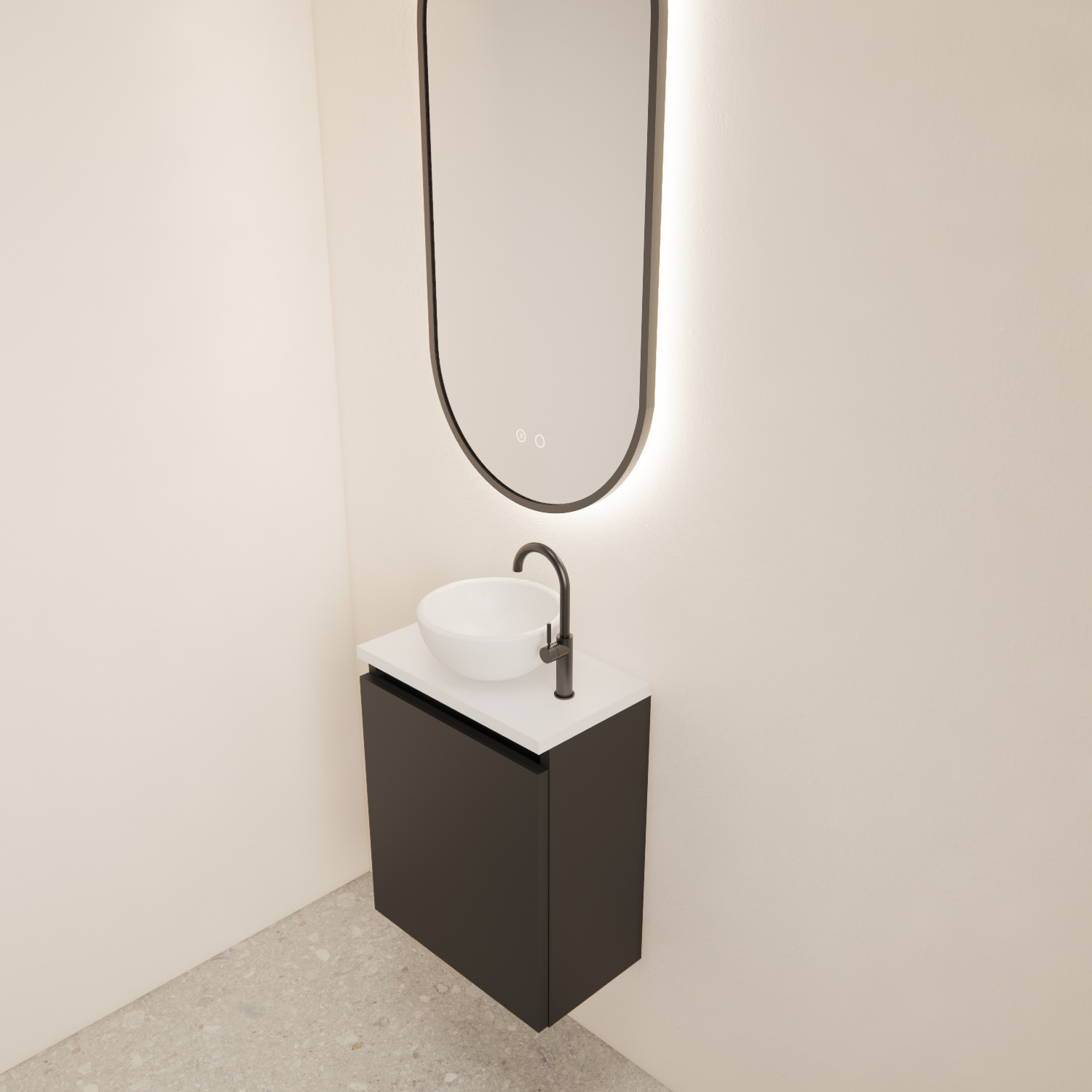De fonteinkast is voorzien van 1 deur die door middel van een softclose systeem langzaam dicht zal vallen. De fonteinkast is daarnaast ook niet voorzien van een greep, deze zit namelijk geïntegreerd in de kast. Onderaan de pagina kunt u een mini waskom bijbestellen mocht u dit willen.
