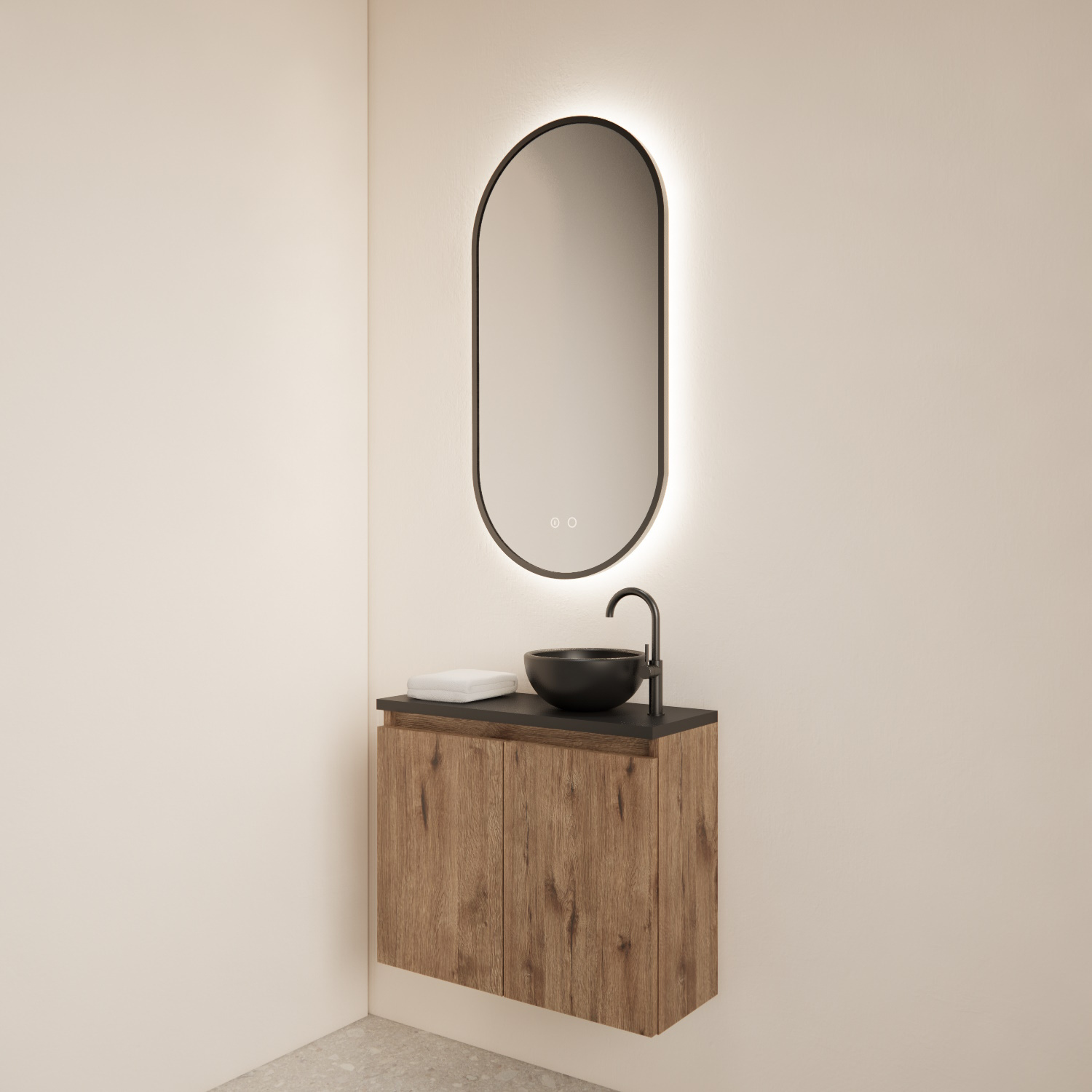 Dit fonteinmeubel is van het merk BWS en komt uit de serie Meadow. De serie meadow bestaat uit fonteinkasten met topplaten die u kunt combineren met een mini waskom. De fonteinkasten zijn gemaakt van Melamine met een kleurafwerking. Deze fonteinkast heeft een Wellington Oak afwerking met een Mat Zwarte topplaat en is door deze kleuren te combineren met veel verschillende stijlen en kleuren tegels.