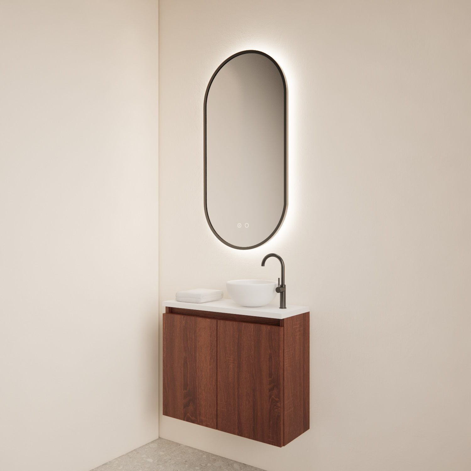 Dit fonteinmeubel is van het merk BWS en komt uit de serie Meadow. De serie meadow bestaat uit fonteinkasten met topplaten die u kunt combineren met een mini waskom. De fonteinkasten zijn gemaakt van Melamine met een kleurafwerking. Deze fonteinkast heeft een Choco Eiken afwerking met een Mat Witte topplaat en is door deze kleuren te combineren met veel verschillende stijlen en kleuren tegels.