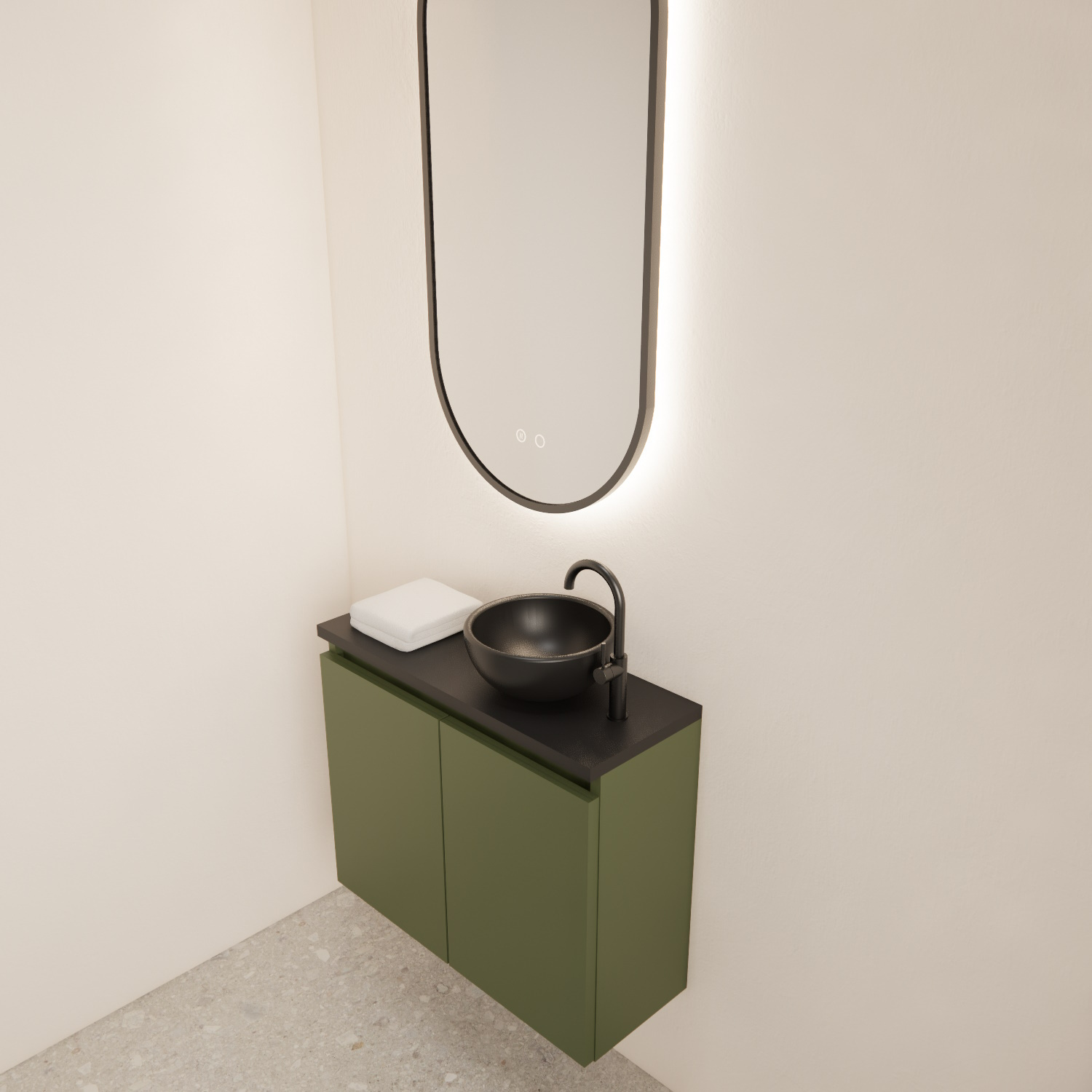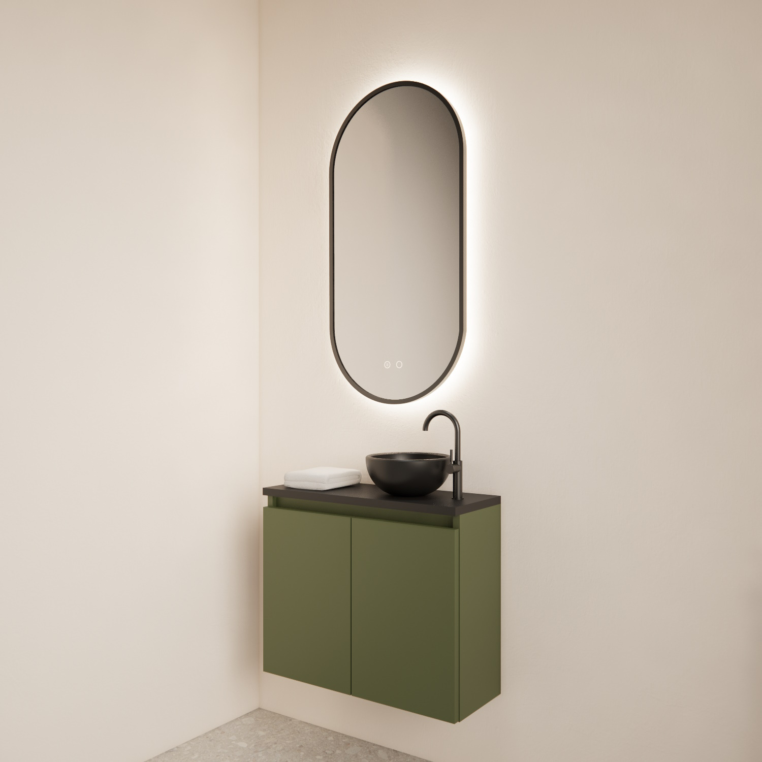 Dit fonteinmeubel is van het merk BWS en komt uit de serie Meadow. De serie meadow bestaat uit fonteinkasten met topplaten die u kunt combineren met een mini waskom. De fonteinkasten zijn gemaakt van Melamine met een kleurafwerking. Deze fonteinkast heeft een Olijf Groene afwerking met een Mat Zwarte topplaat en is door deze kleuren te combineren met veel verschillende stijlen en kleuren tegels.