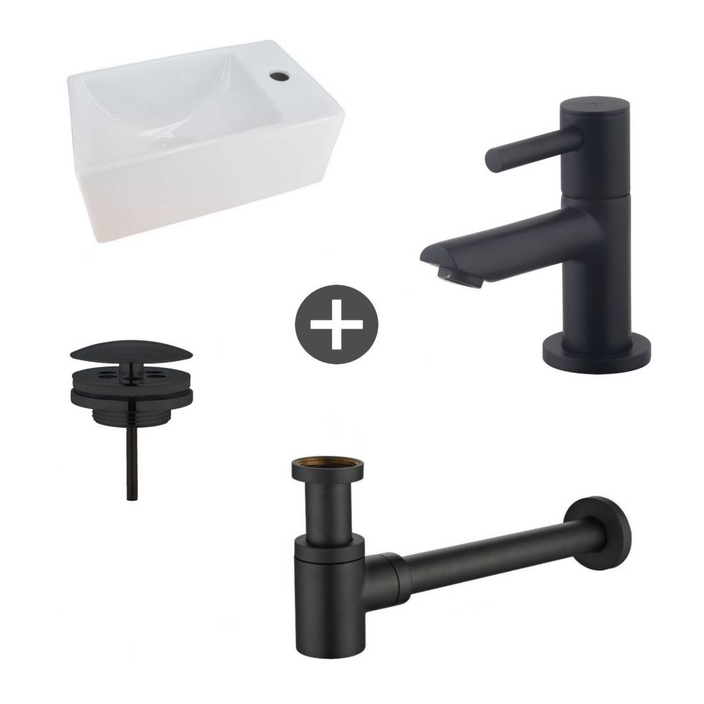 Fonteinen worden geleverd als ONE-PACK welk u een mooi prijsvoordeel oplevert. Wat deze set zo uniek maakt is de combinatie van de zwarte fonteinkraan, sifon, een niet afsluitbare afvoerplug en een bevestigings set.