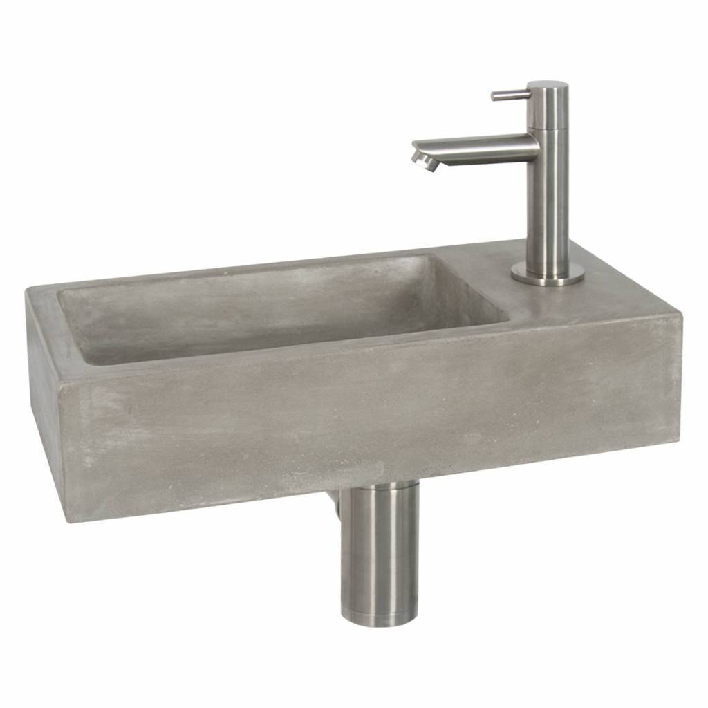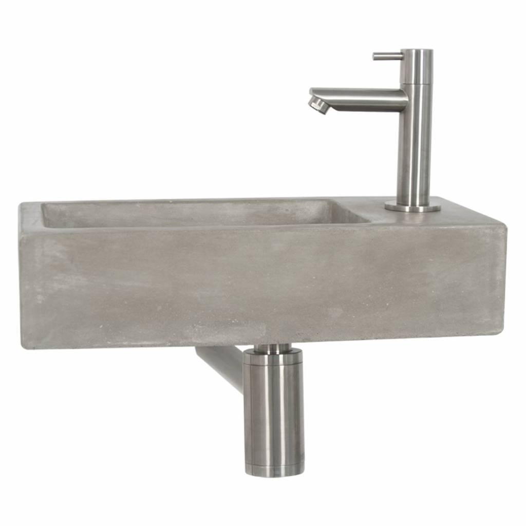 Verfraai uw toilet of badkamer met deze complete fonteinset met betonlook inclusief mat verchroomde kraan en sifon. De Differnz fonteinset Juti is met zijn industriële uitstraling een stoere eye-catcher op uw toilet of badkamer.