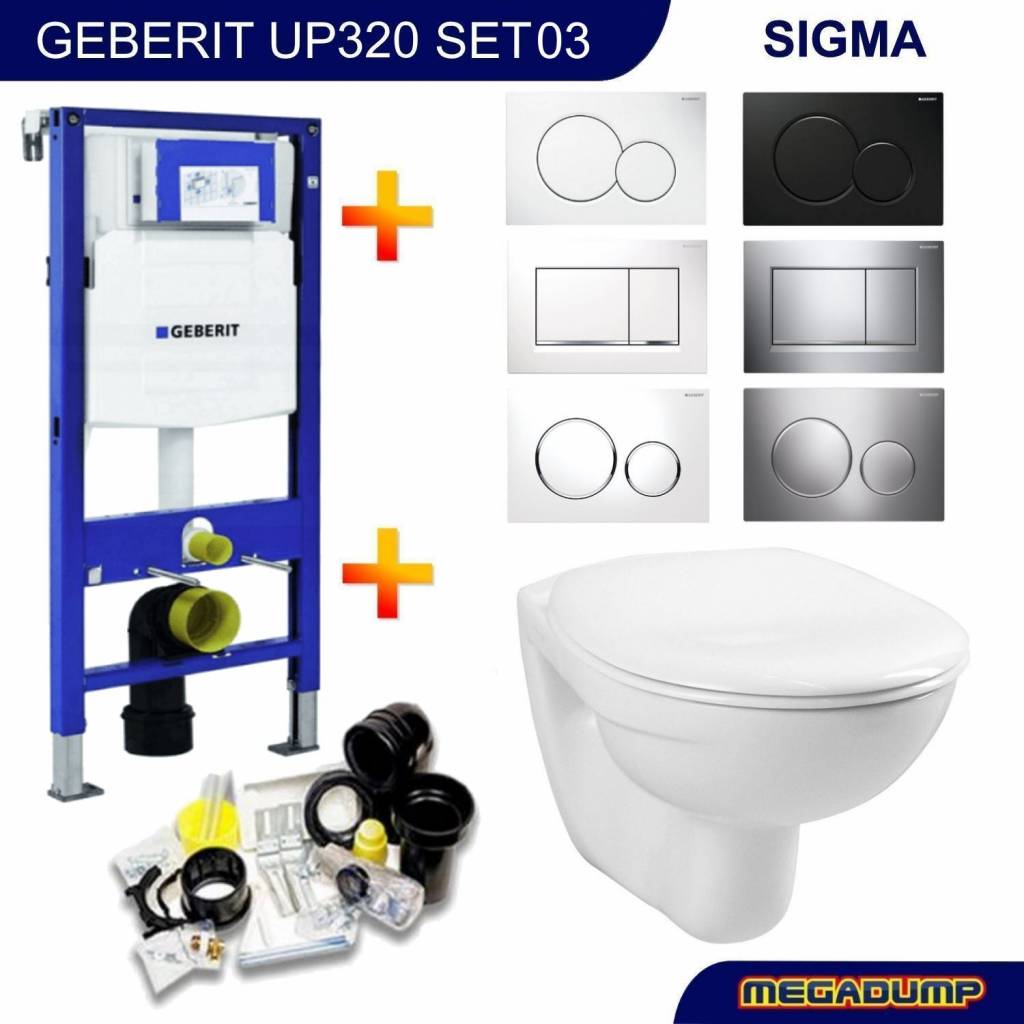 Een complete toiletset met een UP320 reservoir in combinatie met een mooie design toiletpot en bedieningsplaat naar keuze van de Sigma series. Inclusief bevestigingsmateriaal en isolatiematje met wandankers.