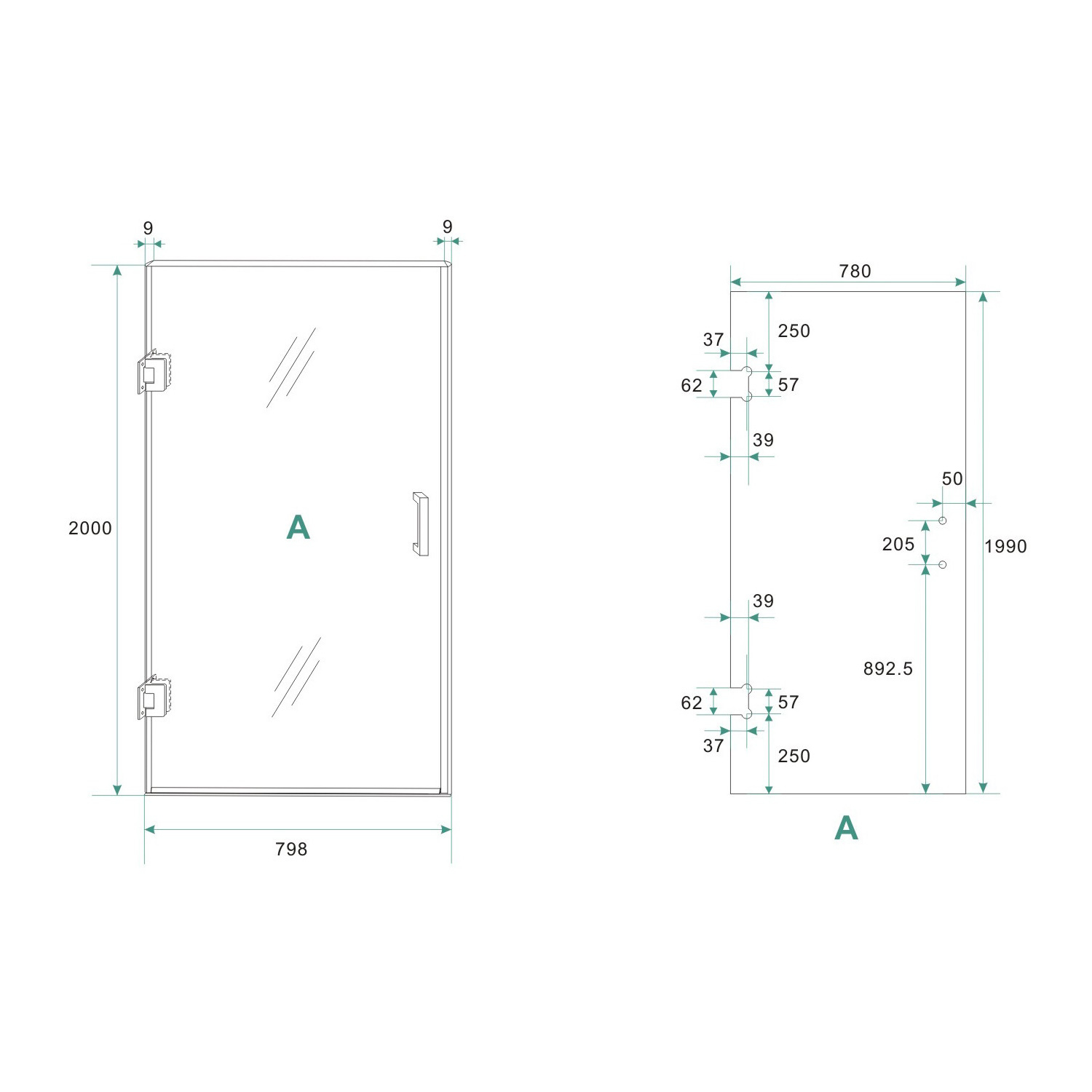 Stel uw eigen nisdeur samen met de glasplaten van Wiesbaden Less! Deze glasplaat heeft een formaat van 80 cm breed en 200 cm hoog en heeft een dikte van 8 mm. Het heldere glas is voorzien van een NANO Antikalk Coating.