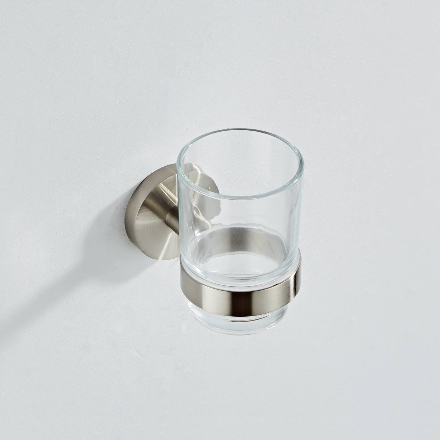 De glashouder van de serie Exclusive wordt standaard met glas geleverd. In de ring zit een kunststof strip verwerkt, zodat het glas niet in aanmerking komt met het metaal. Het glas heeft een diameter van 6.5 cm. Ook heeft de serie meerdere accessoires zodat u uw badkamer kunt combineren met andere elementen uit de serie. Zo voorkomt u kleurverschil in uw accessoires.