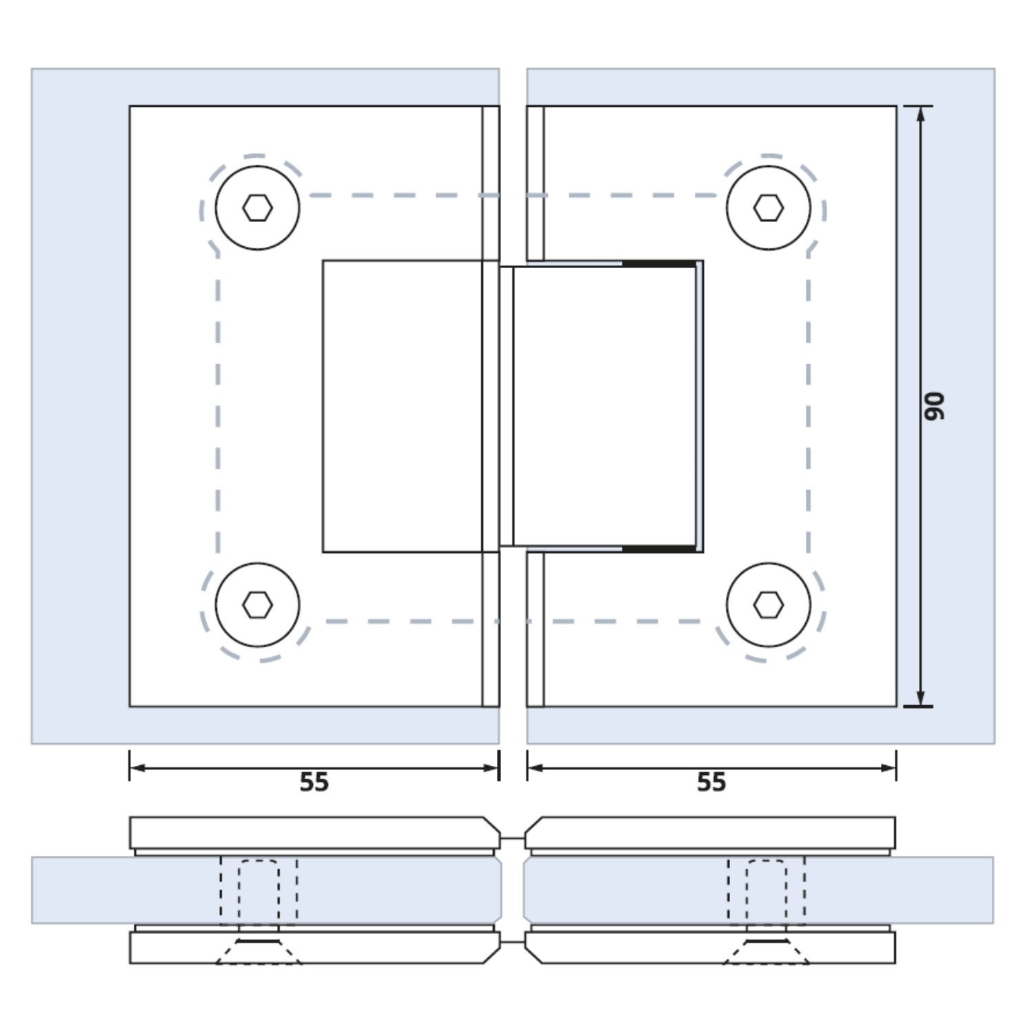 Deze Gunmetalkleur glasscharnier wordt per twee stuks geleverd. Met deze glasscharnier kunt u een D1, D2 of DZ1 aan sluiten op een W2.