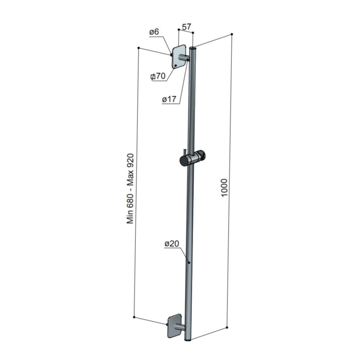 Deze glijstang van Hotbath is gemaakt van messing materiaal en uitgevoerd in een geborstelde nikkel kleur. Met zijn lengte van 100 cm is de glijstang altijd in een goede hoogte te verstellen. Deze glijstang is eventueel te monteren op reeds bestaande boorgaten.