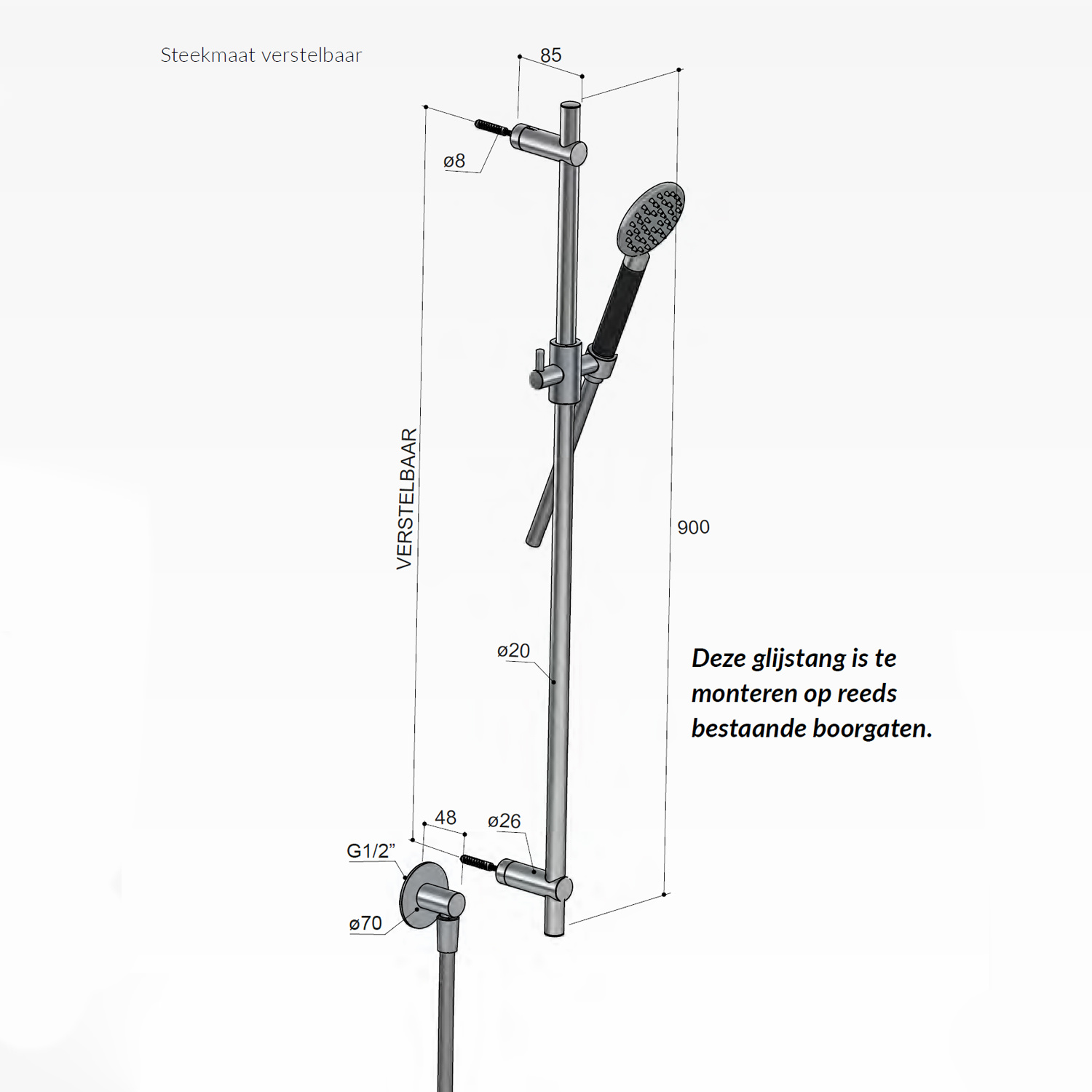 Deze design glijstangset is hoogst waarschijnlijk precies de afwerking die u zoekt in uw badkamer. Net zoals de rest van de Hotbath Cobber serie is ook deze glijstang de eyecatcher van uw badkamer. De set heeft een 1/2" set aansluiting. De stang zelf heeft een lengte van 90 cm en de aansluitpunten zijn verstelbaar over de lengte van de stang. De set bevat een wandaansluitbocht, doucheslang en handdouche met 1 douchestand.