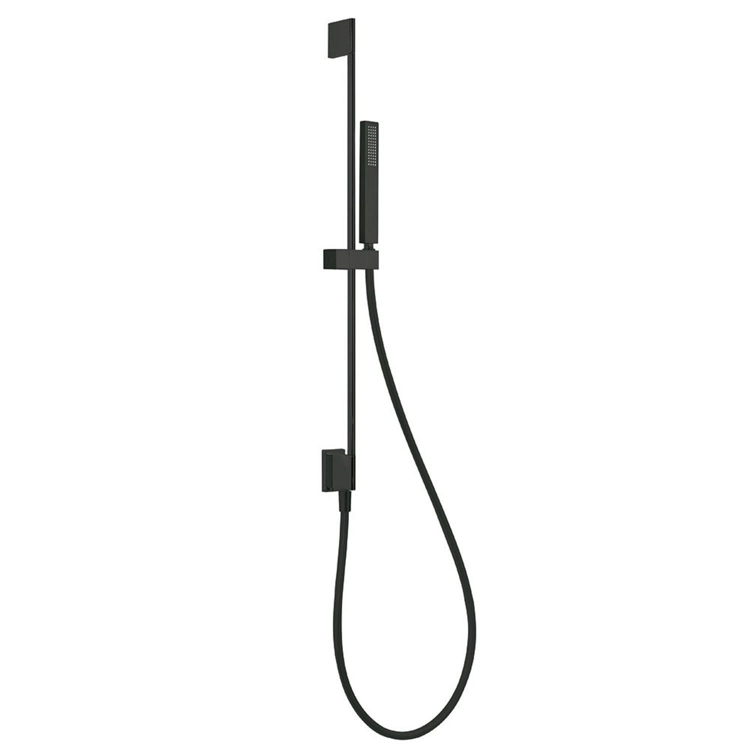 Deze mat zwarte glijstang is van het merk Tres. De glijstang in voorzien van een glijstuk waar u de handdouche op de gewenste hoogte kunt brengen. De glijstang heeft een hoekige vormgeving wat een luxe uitstraling geeft aan uw badkamer. Deze glijstang van Tres is ook voor zien van een ingebouwde waterinlaat en handdouche met slang.