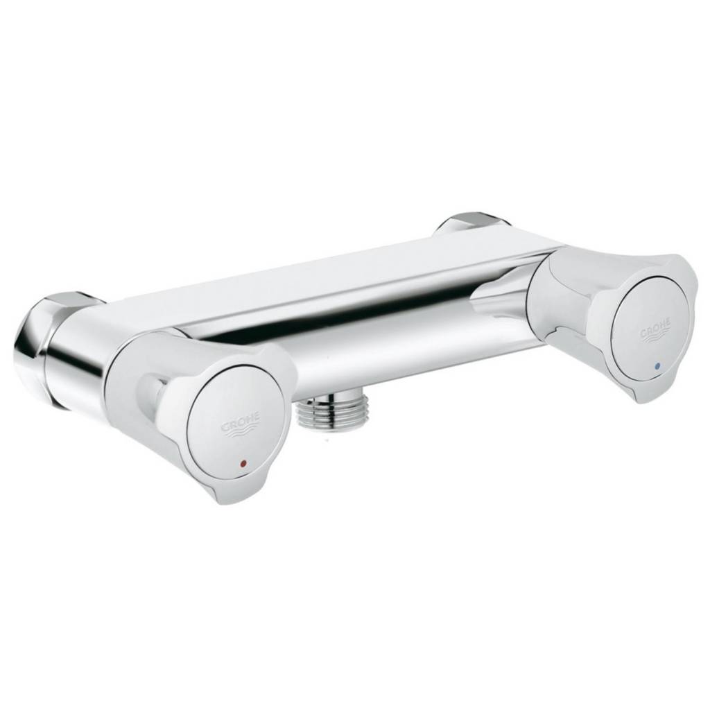 Grohe douchekraan met Costa greep, kunststof verchroomd en warmte geïsoleerd. Deze douchemengkraan heeft tevens ook een 1/2 inch doucheslang aansluiting en een longlife-bovendeel dat de duurzaamheid aanzienlijk bevorderd. Zonder koppelingen.
