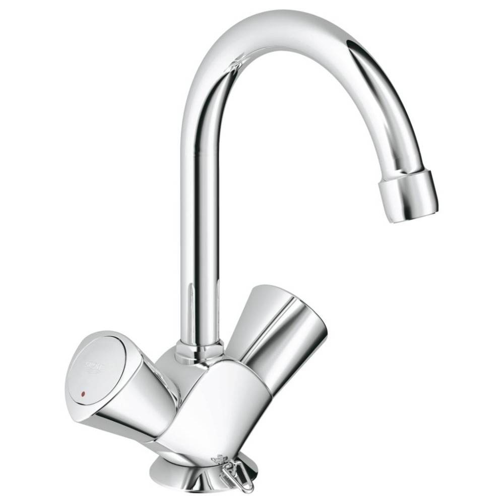 Wastafelkraan Costa S met ketting van het merk Grohe. Deze wastafelkraan heeft metalen grepen en een keramisch bovendeel. Ook heeft deze wastafelkraan een draaibare buisuitloop met mousseur en flexibele aansluitslangen.